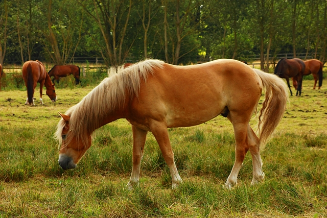 allerdings auch einen Weidenpfahl hinten in der Pferdekoppel