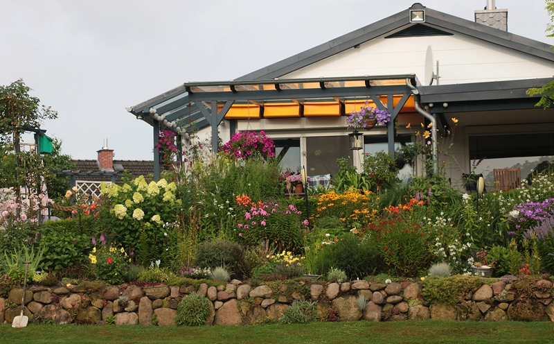Die nachbarlichen Gärten sind z.T. auch sehr bunt, da haben wir uns gegenseitig