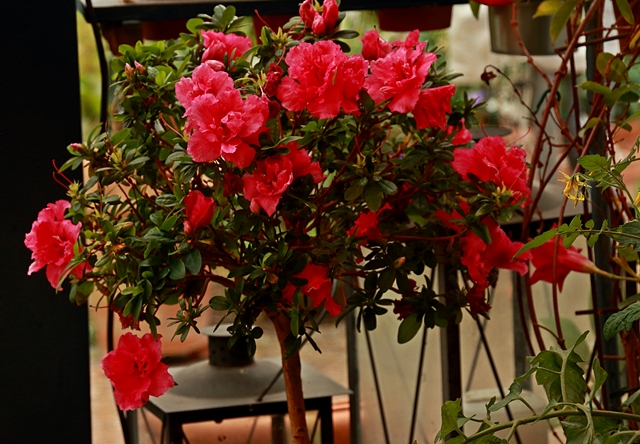 Die 'WoZi-Fenster-Azalee', die seit 4 Jahren hier unermüdlich blüht,