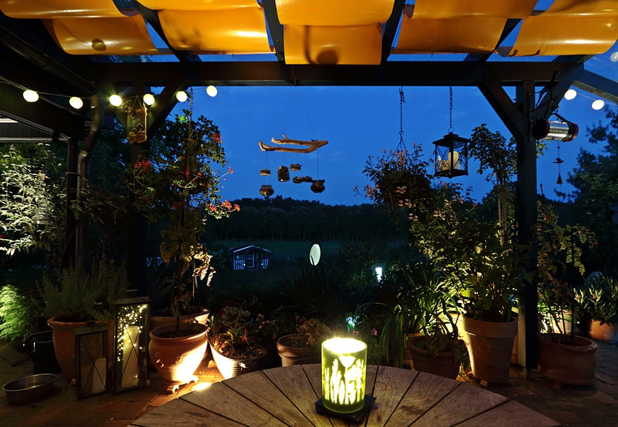 als GöGa vor Jahren die Terrasse neu pflasterte, hat er Bodenstrahler mit eingebaut.
