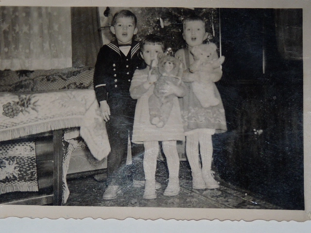 und meine Schwester rechts im Bild wurde von ihm immer "Forelle" genannt, weil sie wohl dünn und lang war wie ein dürrer Fisch