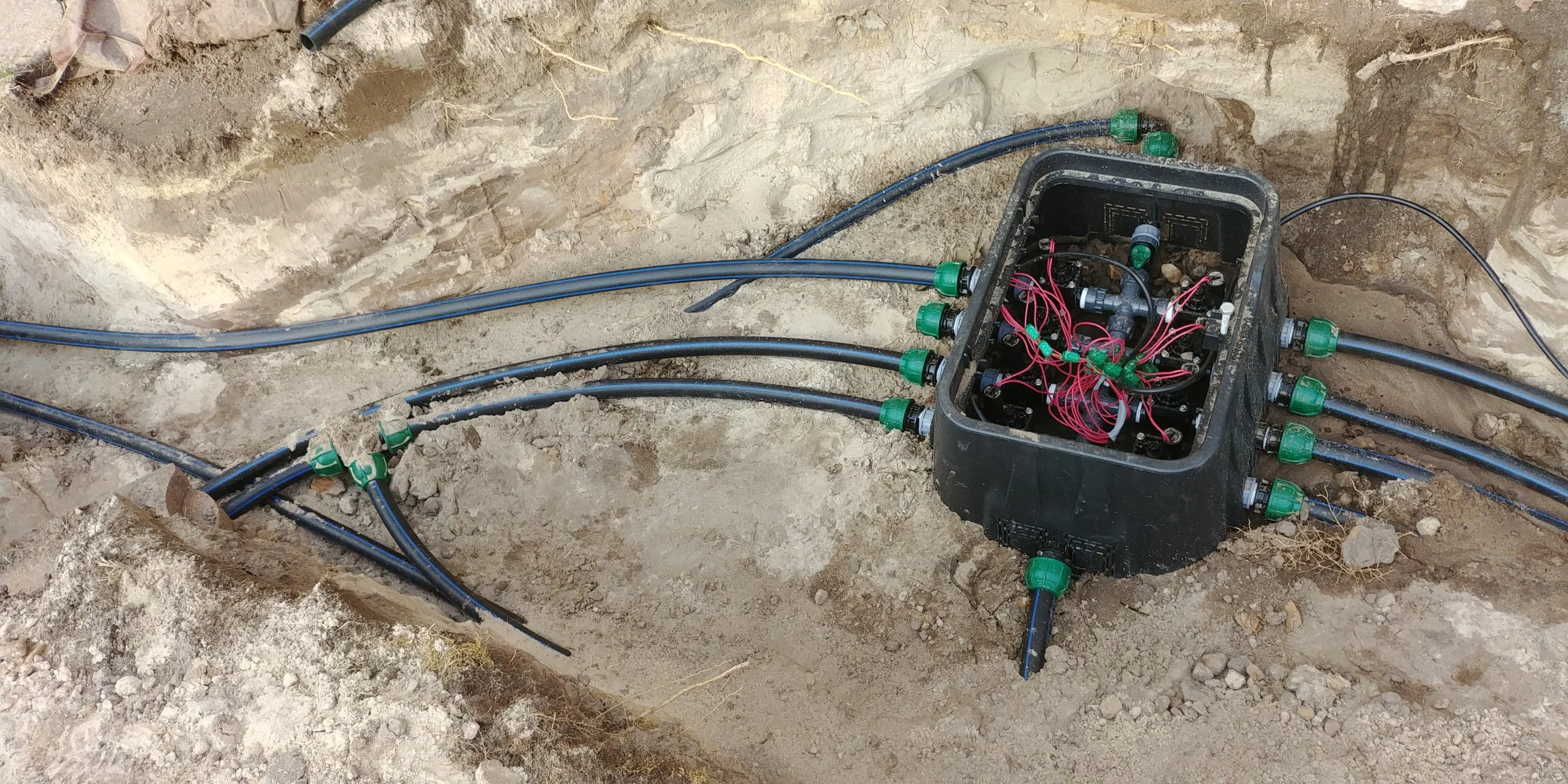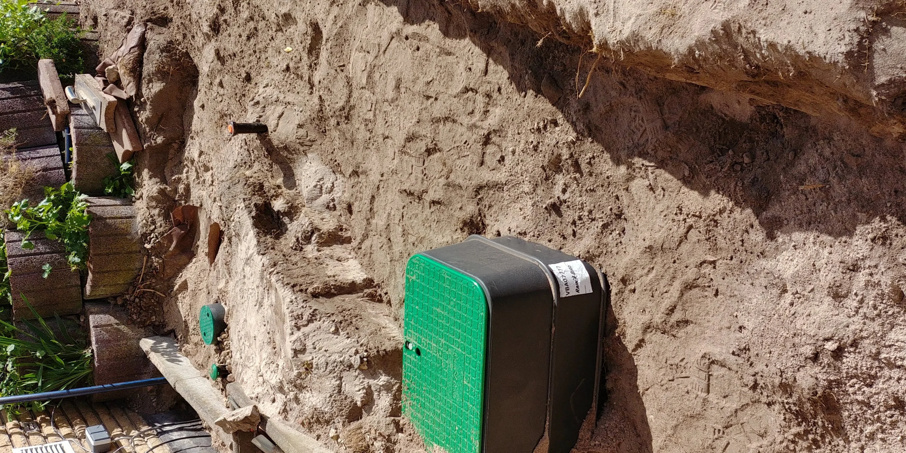 - die 34 Regner sind alle erfolgreich getestet und rausgefahren, komplette Spülung war nicht machbar, sonst wären entweder die Regner wieder komplett abgesackt oder sie hätten im Schlammloch gesteckt. Also heisst es Warten auf die Hunter Verschlussdüsen, damit auch die letzten Sandkörner aus den Rohren gespült werden können.
