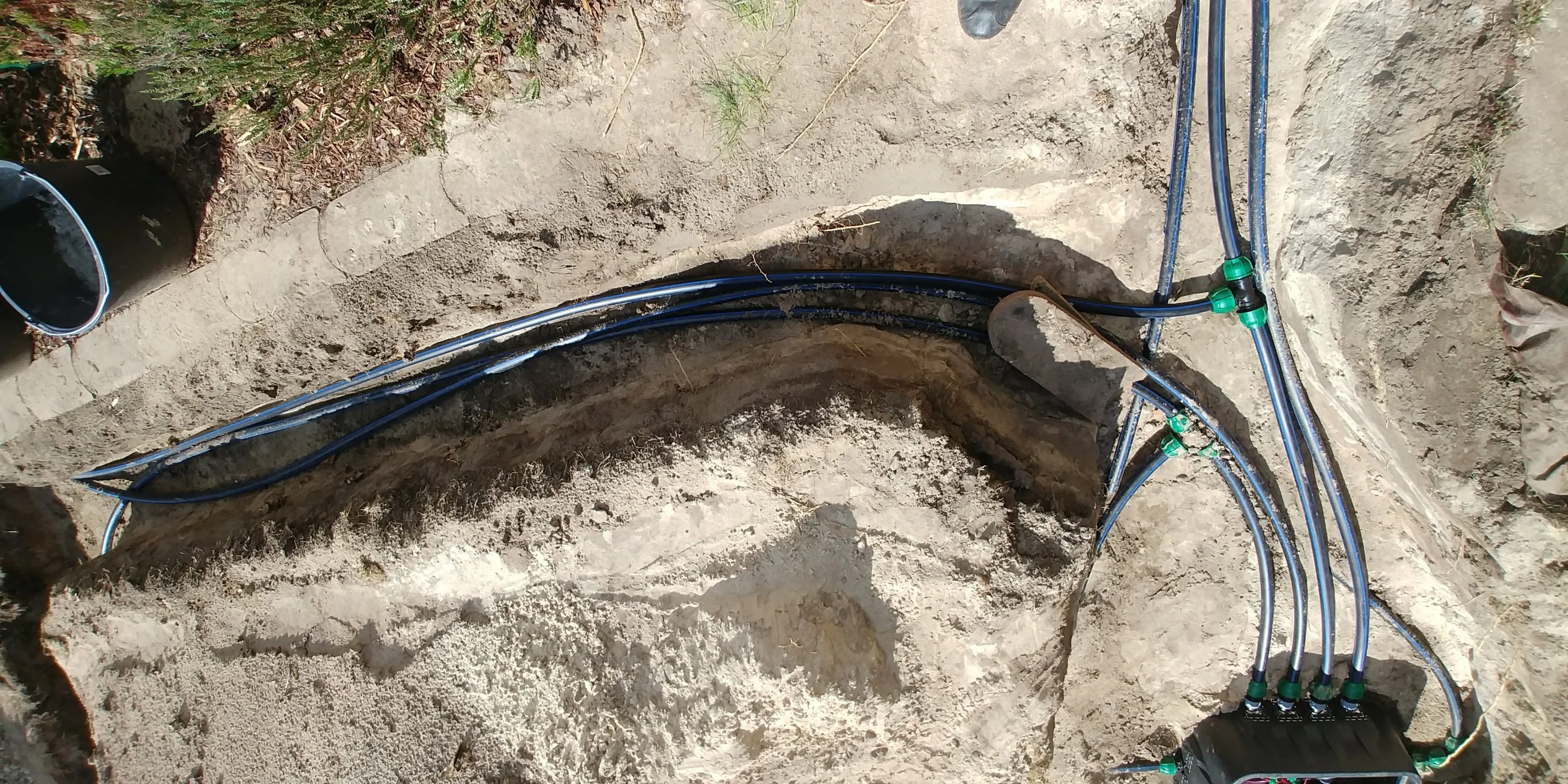 Werde mich an die Empfehlungen der irrigationtutorials halten, erstmal ohne Regner ordentlich spülen, dann mit Regnern und dann alle einzeln, Wasser gleichzeitig zum verdichten nutzen...