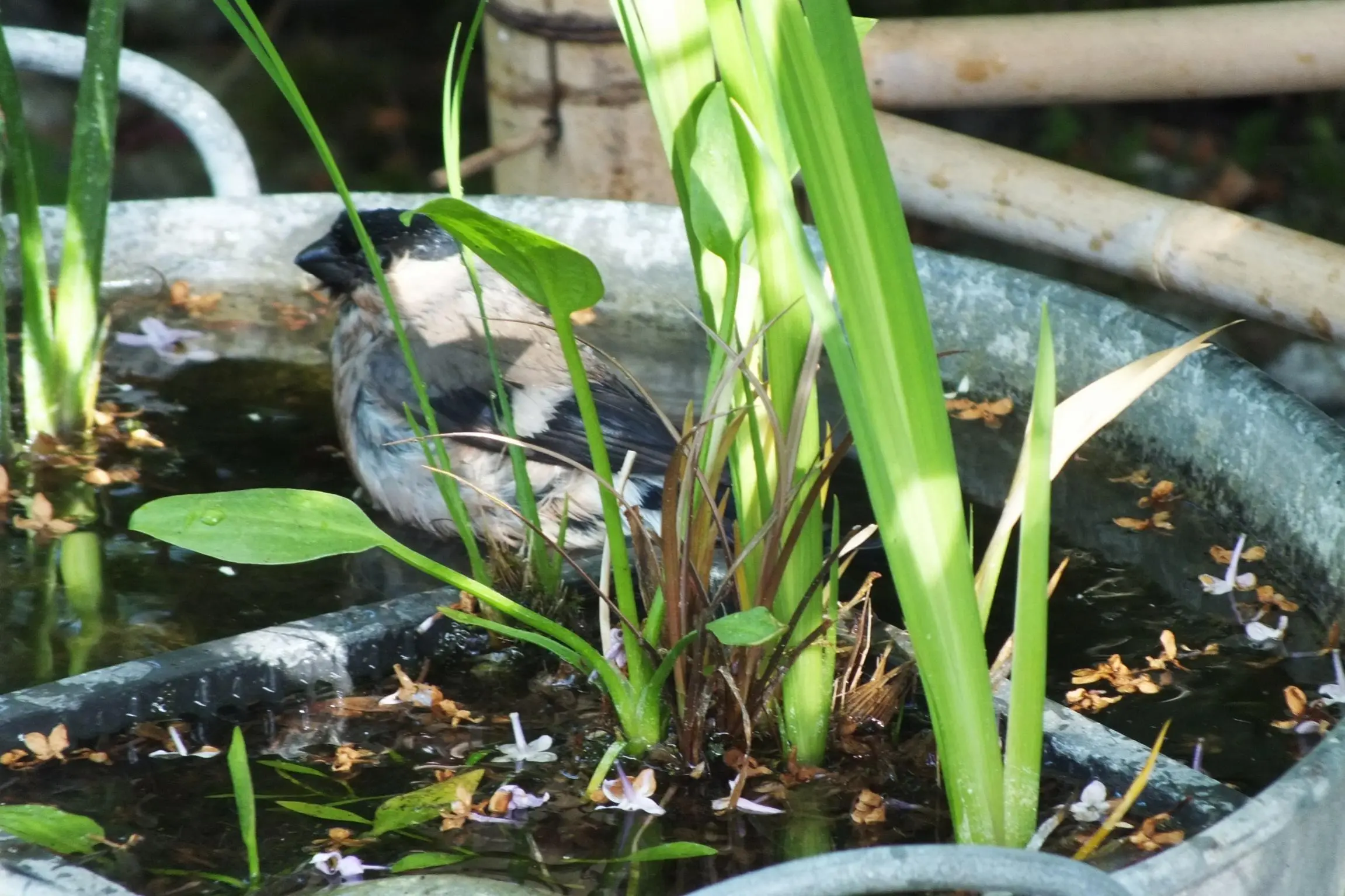 gestern war eine kleine Mönchgrasmücke im Wasser,