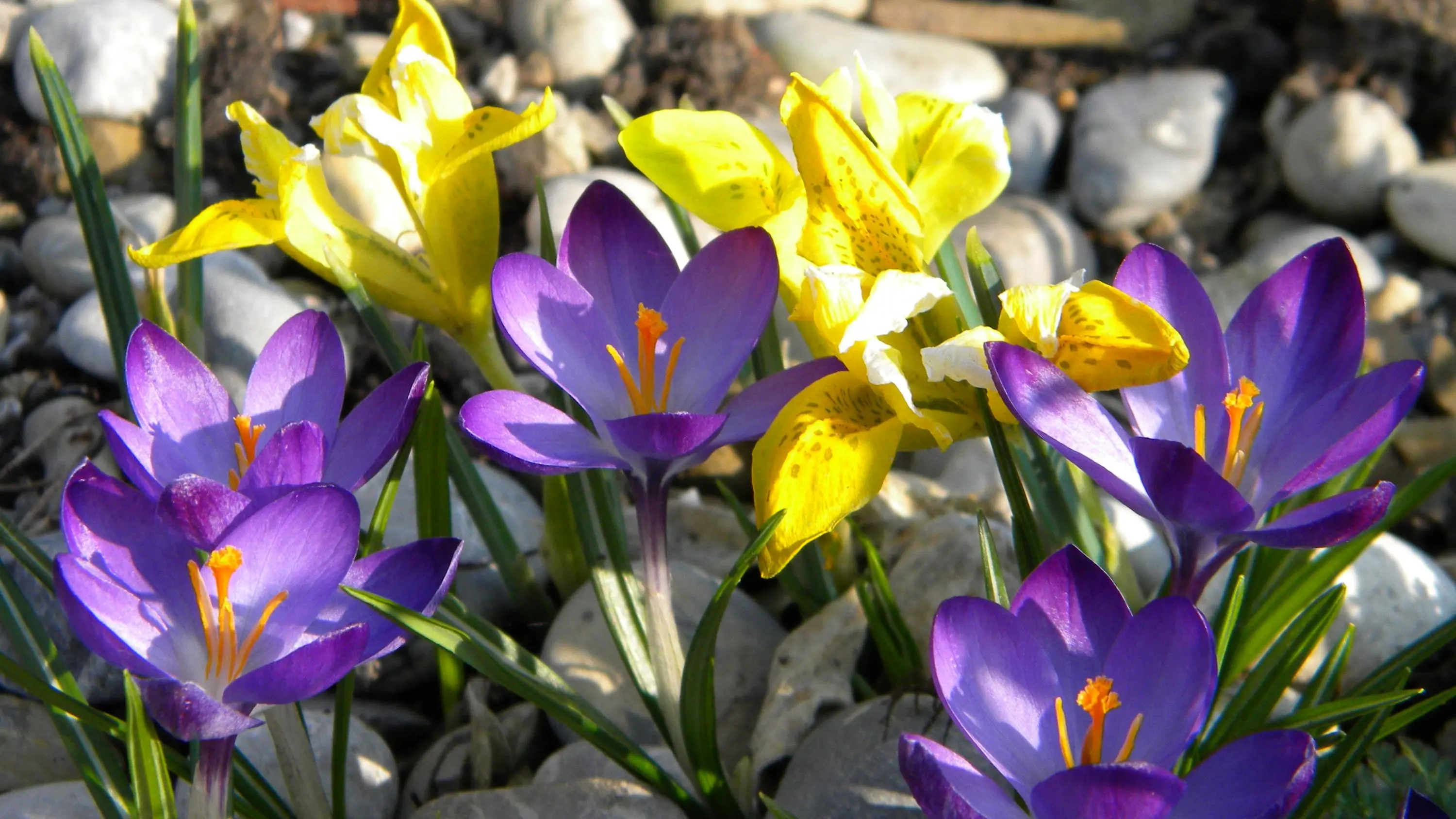 Schöne Kombi, die gelben Iris mit den lila Krokussen,