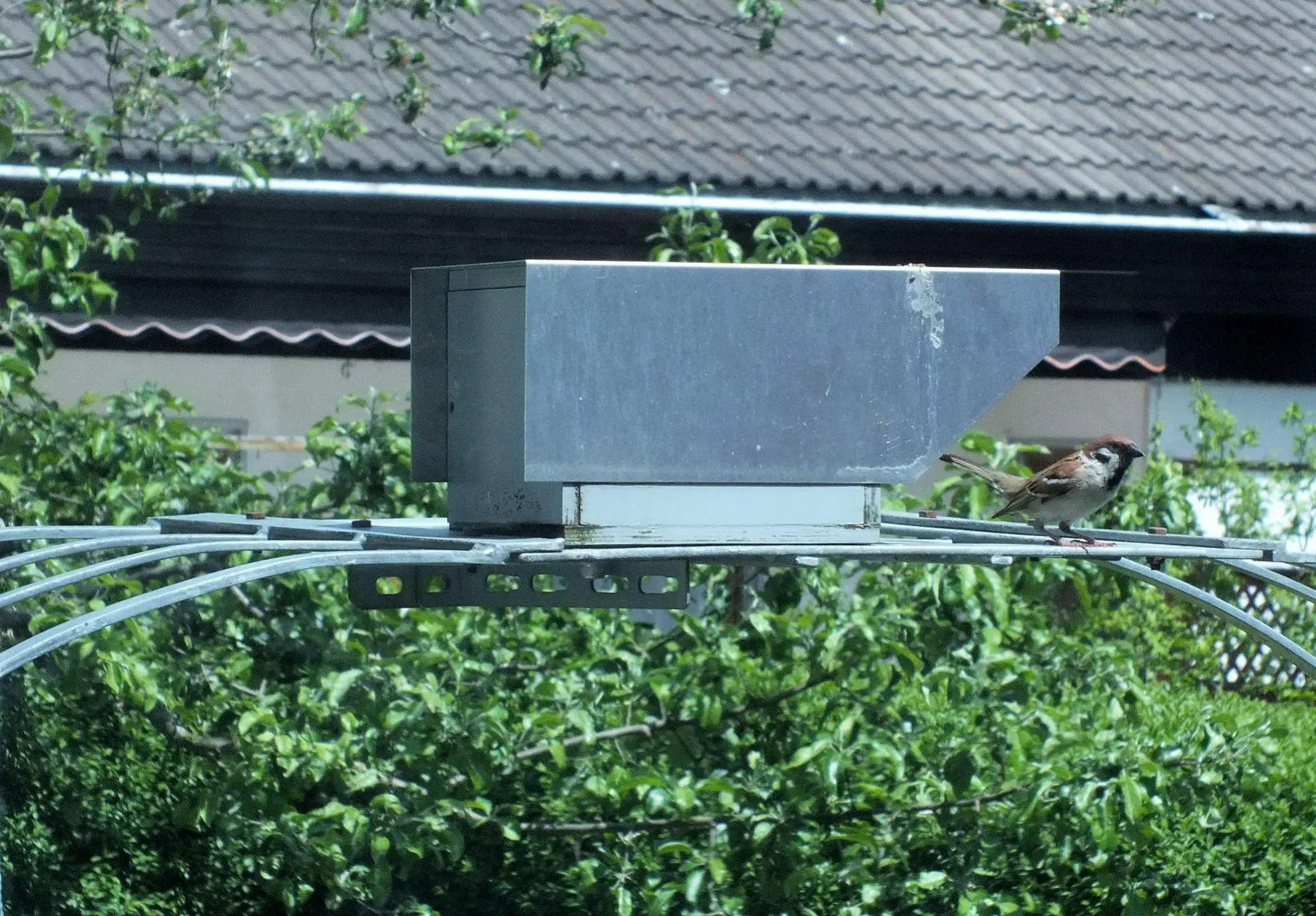 Endlich erwischt, den Spatz vor dem Nest.
