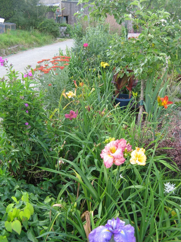 also hier sind phloxe,schafgarbe,links elfenblumen nebst apfelbaum