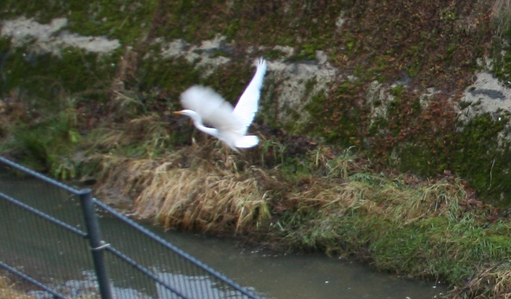 Ich bekomme im Winter auch immer Besuch vom Graureiher und auch vom Silberreiher, heuer war noch keiner da. Im Winter kann ich die oft fotografieren vom Klofenster aus. Da muß ich oft ganz vorsichtig vom Fenster rausschauen und die Kamera schon griffbereit, eingestellt und eingeschaltet haben. Wenn der Reiher die geringste Bewegung sieht ist er weg. Wenn er auf der Bachwiese steht, geht das besser, da kann ich mit zoomen viel machen. Das sind so stolze Tiere, die faszinieren mich immer wieder. Wie elegant die davonschweben.