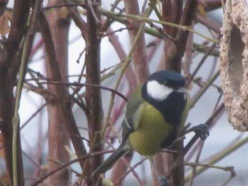 die knödel und ringe habe ich aber absichtlich so aufgehängt, daß nicht nur akrobaten, wie die meisen, daran fressen können, sondern auch beim knabbern bequem auf einem ast sitzen können. es sollen doch alle zum fressen kommen.