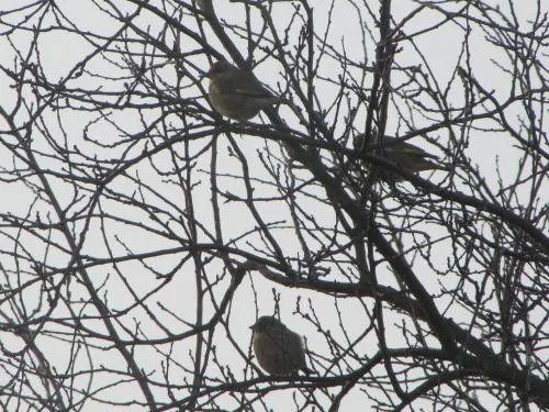 Im Vorgarten, wo ich überhaupt nicht füttere, tummeln sich vor allem Spatzen und Zeisige, da liegen in den Pflasterritzen anscheinend noch ganze viele Samen der Birke etc.