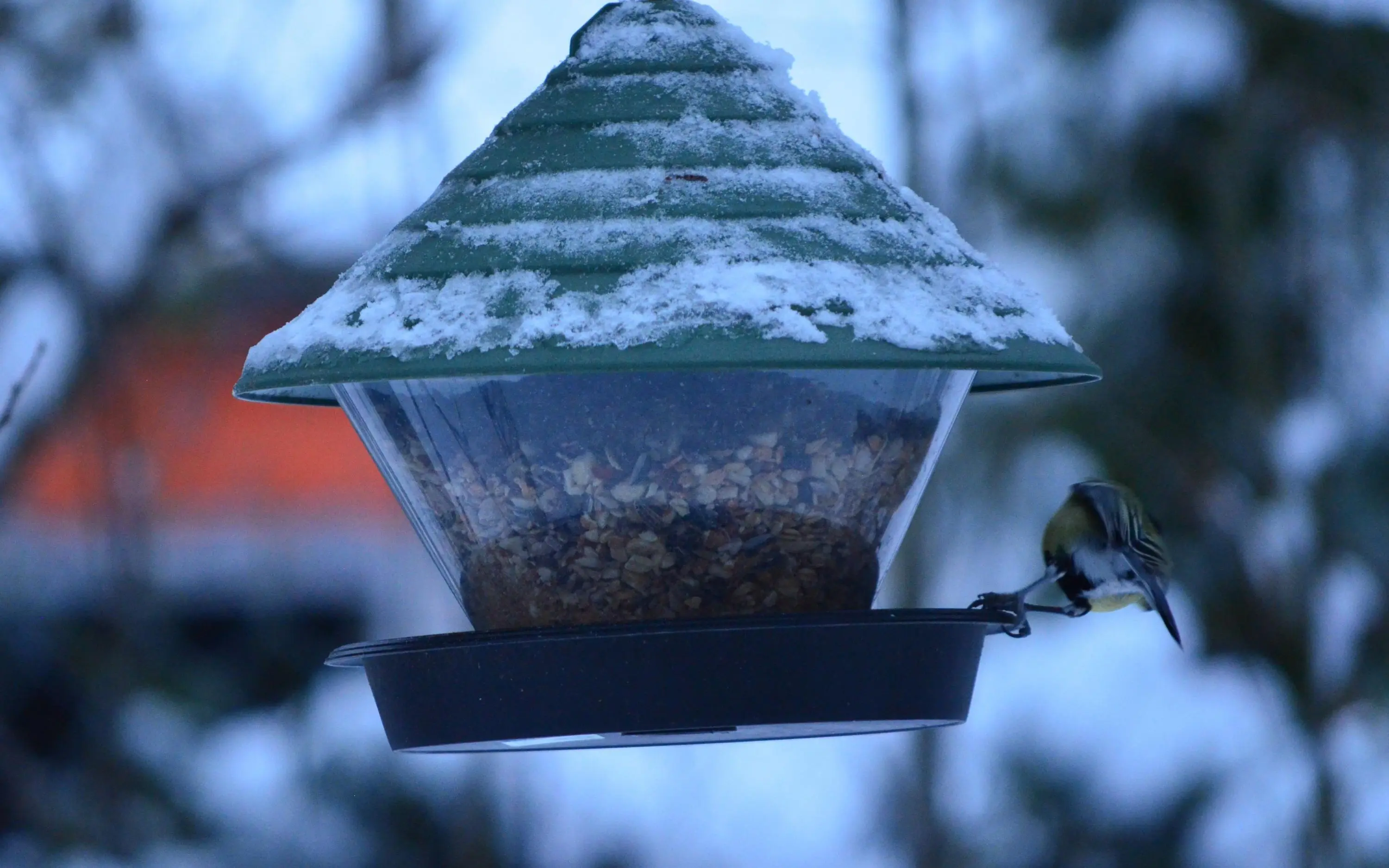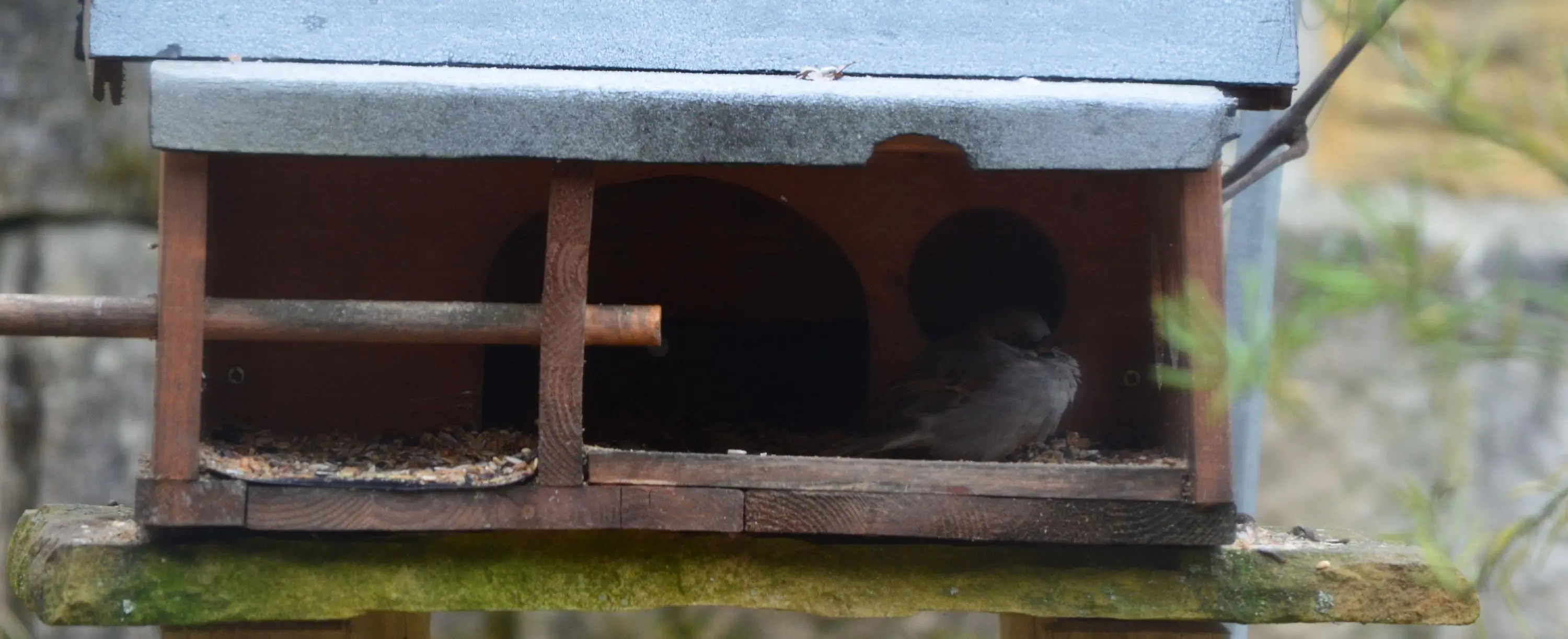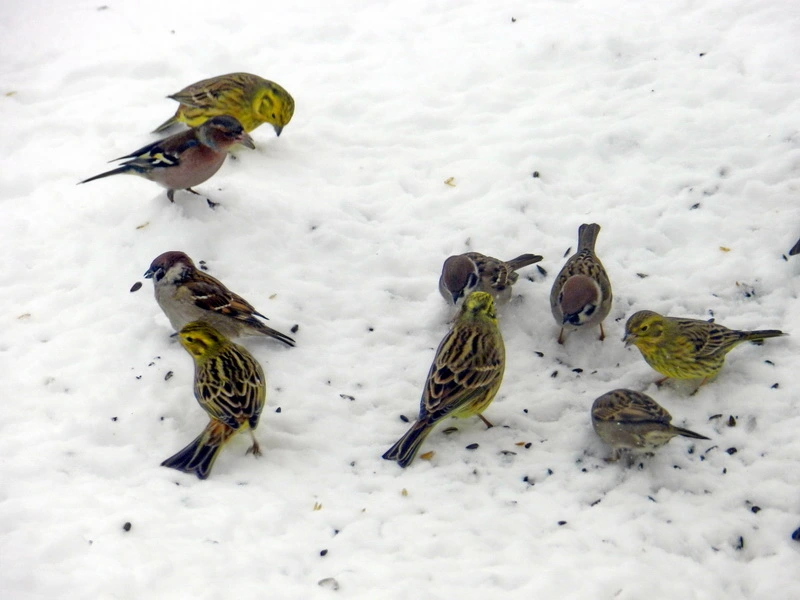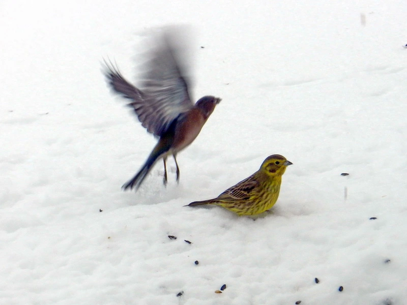 Das trifft auch zu für Erdnüsse in viel zu engmaschigen Netzbehältern: Man sieht die Stellen, wo die Schnäbelchen auftrafen, aber die Nüsse blieben im Netz!!