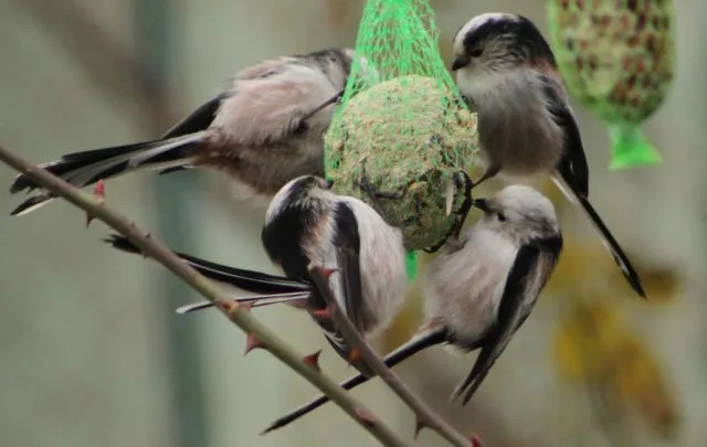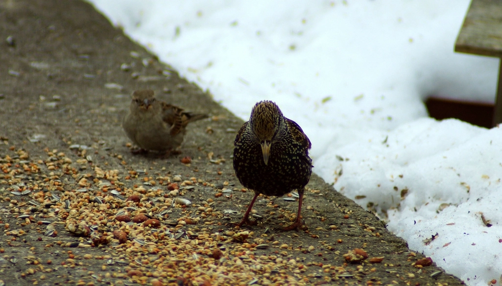 Aufeinmal sind viele Spatzen da, die Meisen haben sich schon wieder ver-