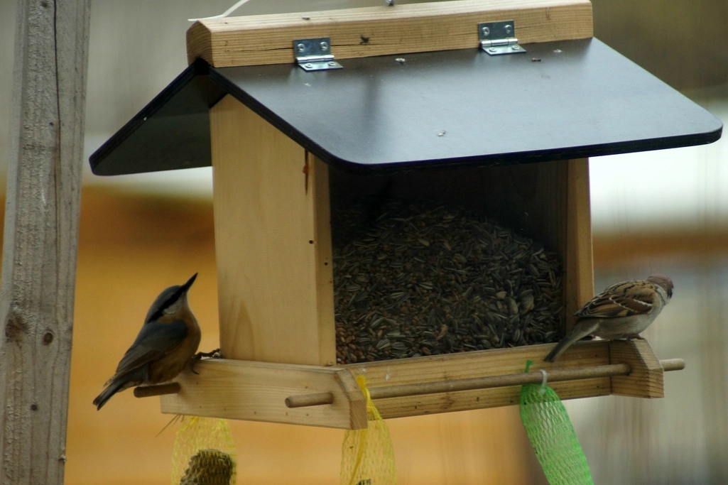 Schnell noch ein paar Körnchen vom Häuschen mitnehmen