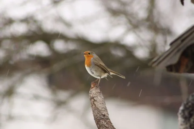 Heute kamen neben den üblichen Gästen ein Erlenzeisig und ein Rotkehlchen ans Häuschen.