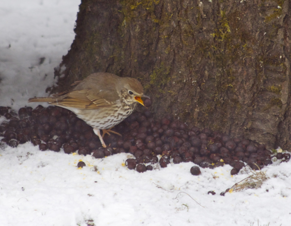 Wir haben Misteln in den Kirschbaum gehängt, heute wurden sie von den Drosseln entdeckt und geplündert
