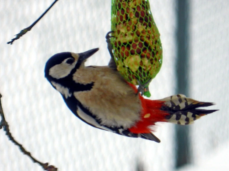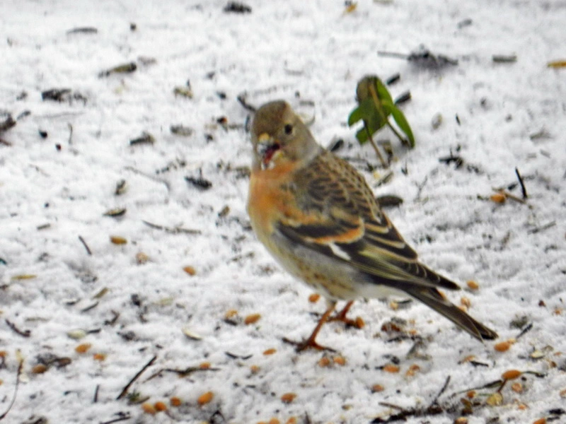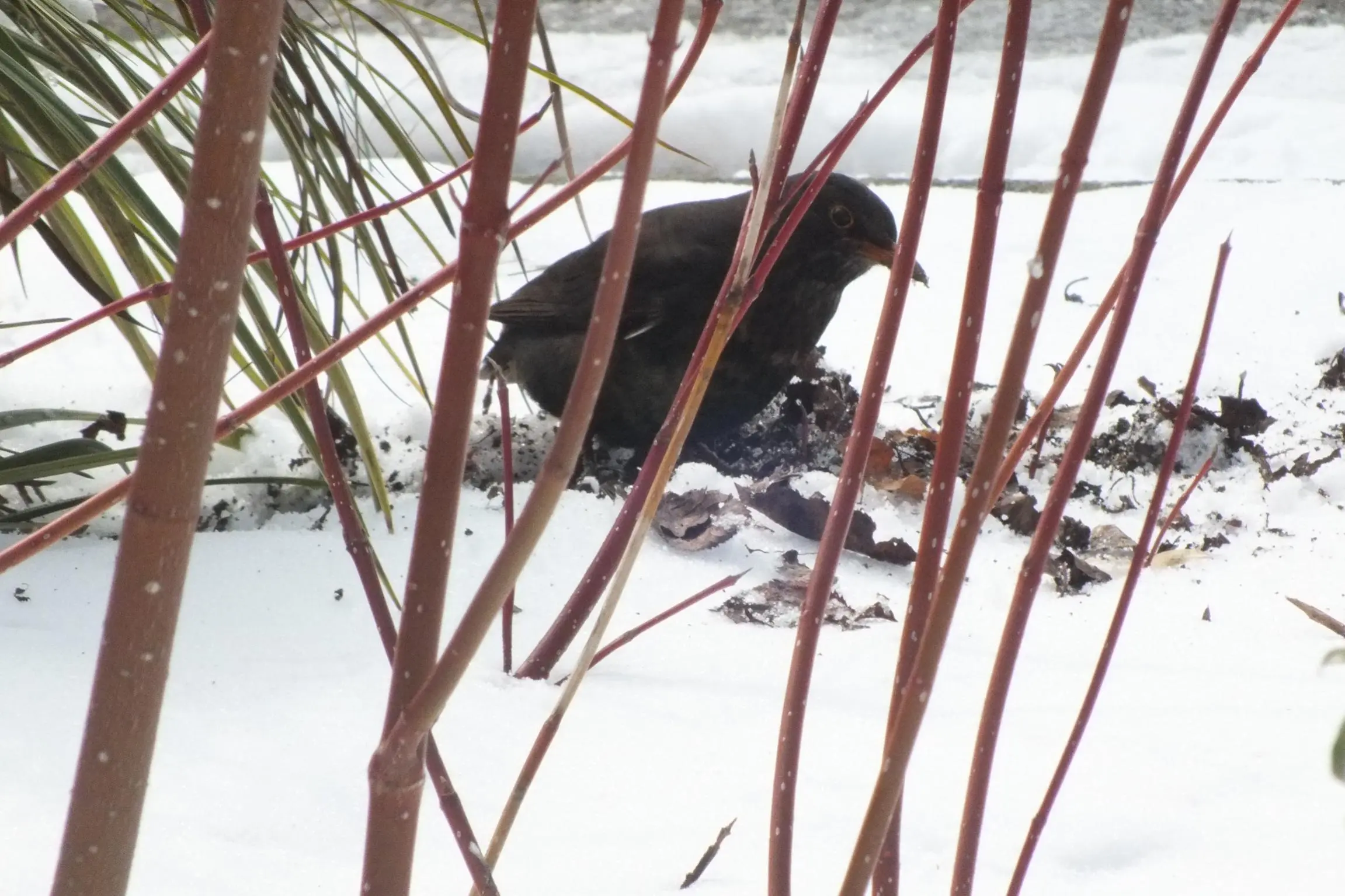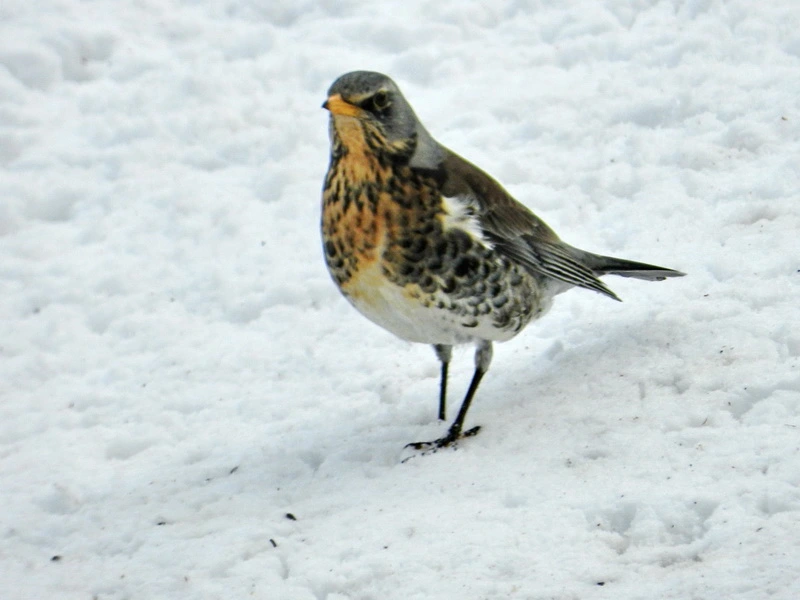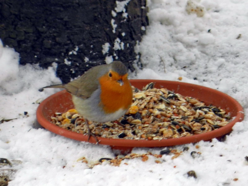 Die vergangene Woche war es ja noch bitter kalt und das kleine Federvieh hat noch kräftig zugepickt. Es war sehr interessant, weil jetzt auch Vögel kamen, die im Winter nicht hier waren, z. B. die Bergfinken. Ein Grauspecht und eine Wacholderdrossel waren auch dabei. Die kleinen Rotkehlchen, die vorher sehr scheu waren, sind in den letzten Wochen zu Dauergästen geworden.