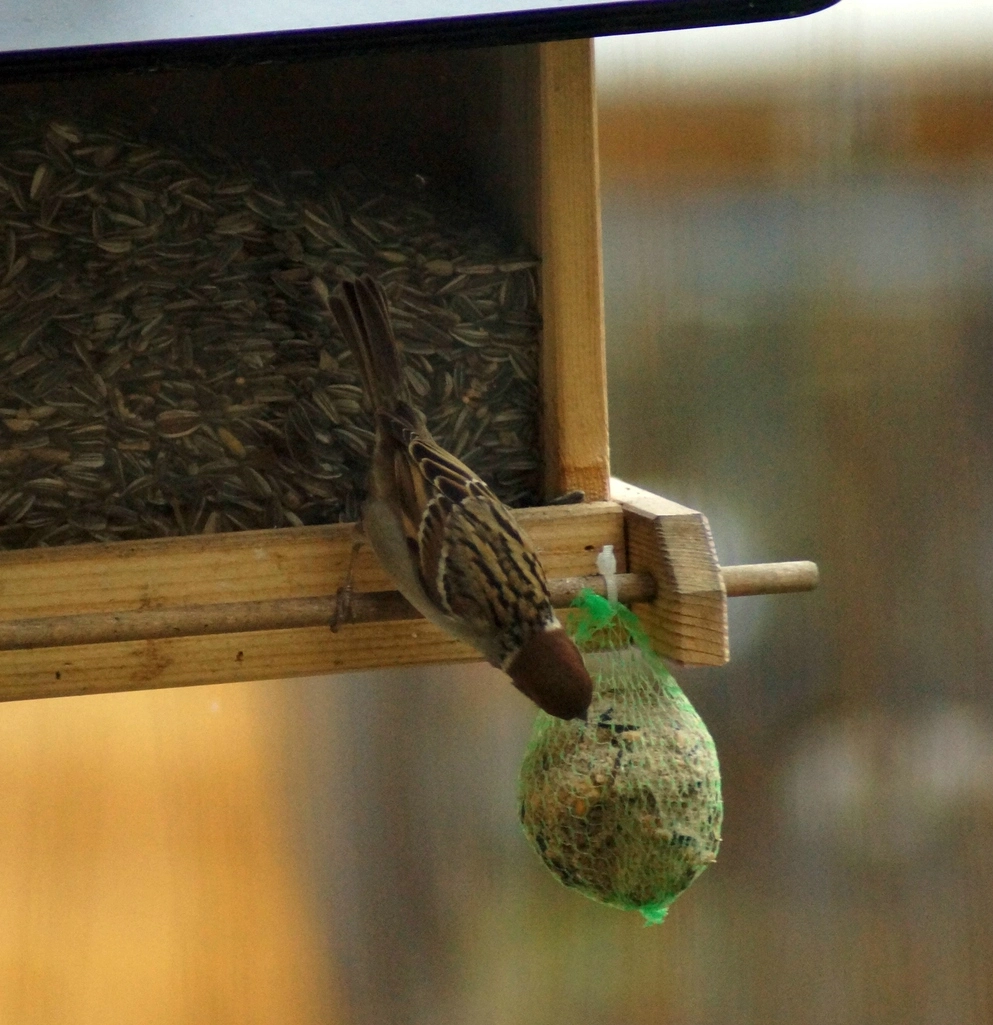 Auch hier kaum mehr Haussperlinge zu sehen.Mir kommt vor,dass auch die Feldsperlinge sie irgendwie vertrieben haben.Die kommen in Massen.