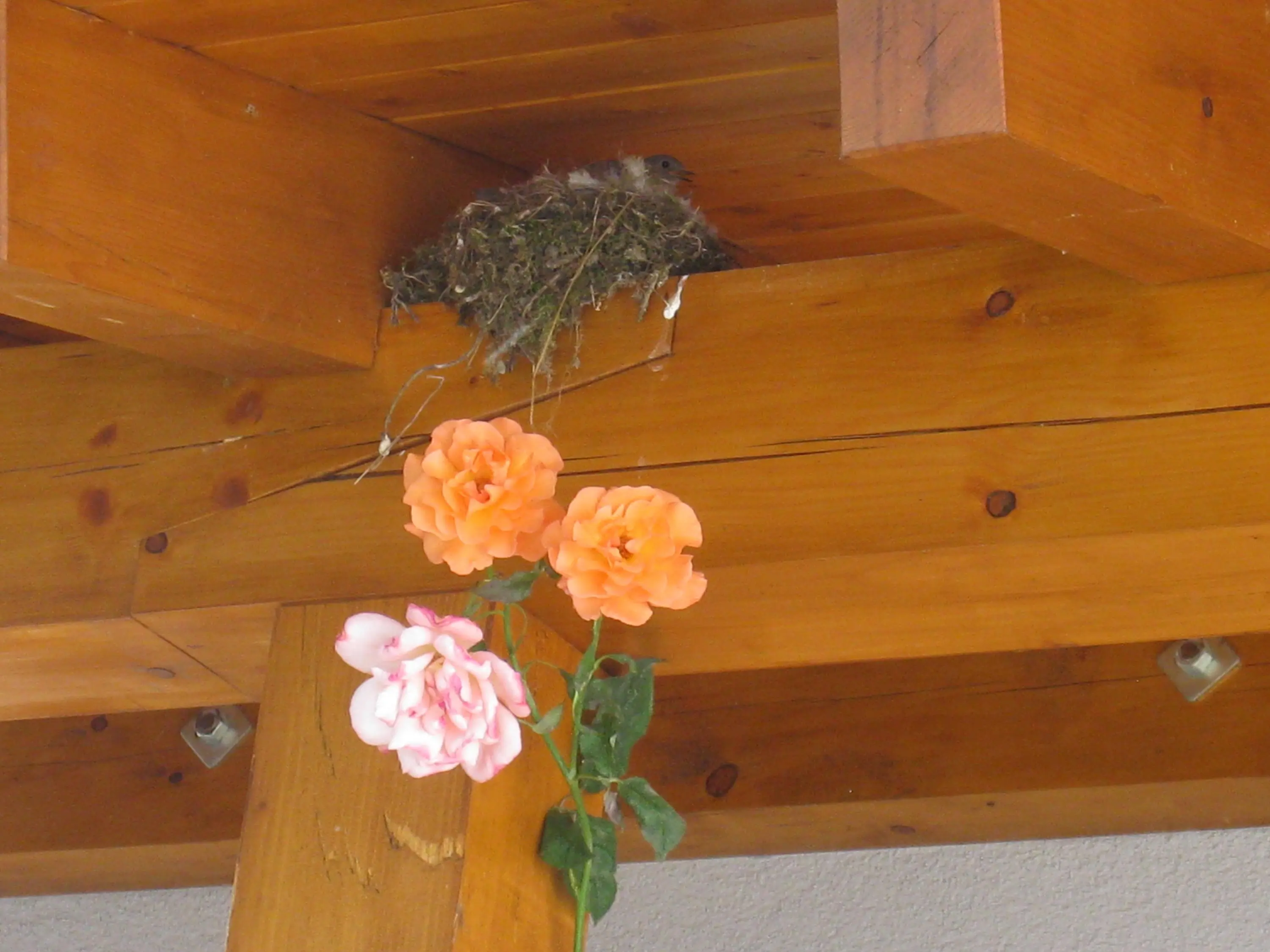 • Unter unserem Vordach haben sich schon Jungvögel vor dem Starkregen geflüchtet und das Unwetter abgewartet-einmal die ganze Nacht lang.