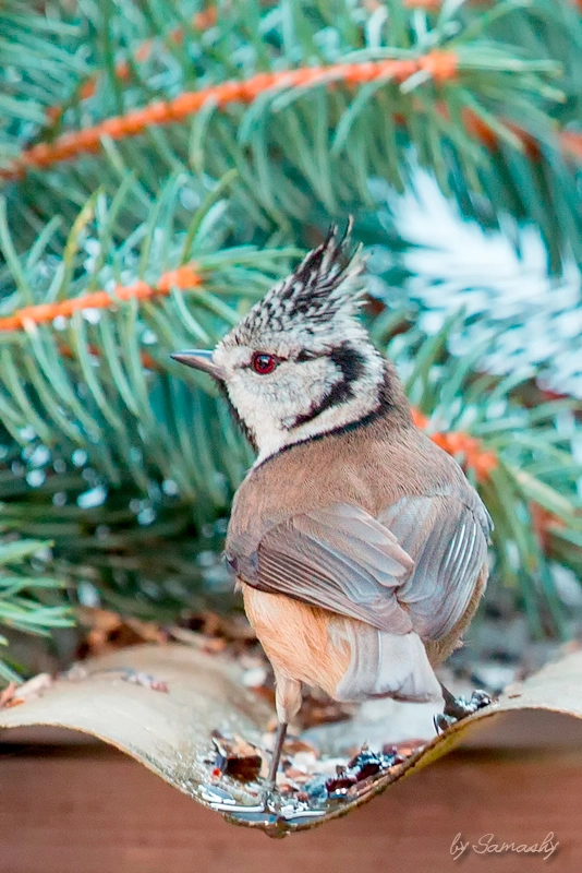 Als ich in den letzten Tagen die Beete ausgeputzt und die vertrockneten Stiele zurück geschnitten habe, wanderten alle Samenstände auf die Gartenbank anstatt auf den Kompost. Und sie wurden auch angenommen. Die Dinger sehen mittlerweile ganz zerrupft aus.
