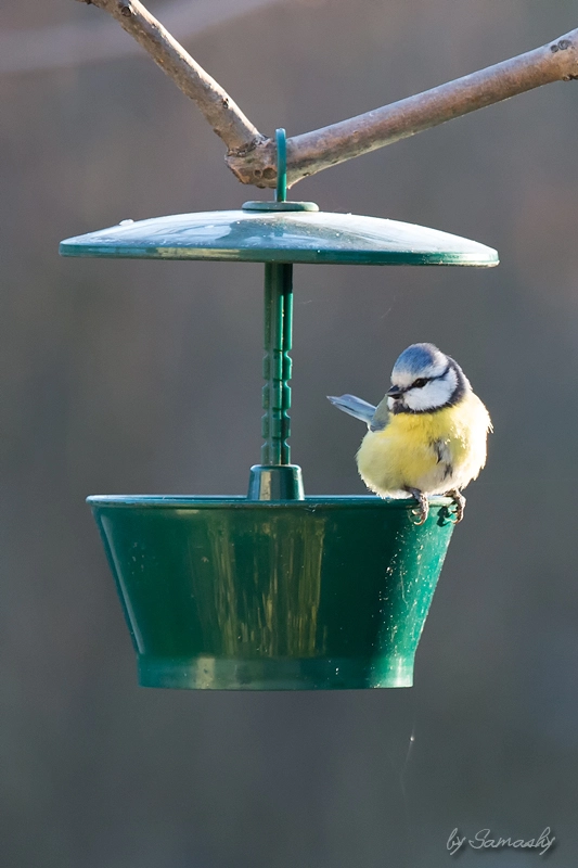 Ganz viele Kohl-und Blaumeisen waren am Futterplatz, leider sind die Grünfinken,