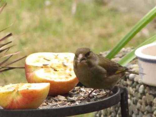viele Grünlinge kamen in Scharen an die Futterplätze, das Rotkehlchen
