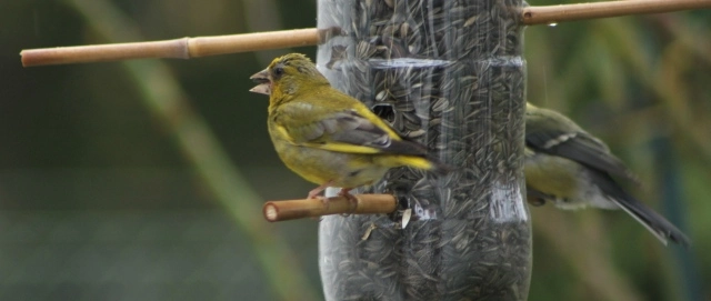 Grünfinken haben noch Jungvögel zu versorgen und der Dauerregen setzt ihnen sehr zu.
