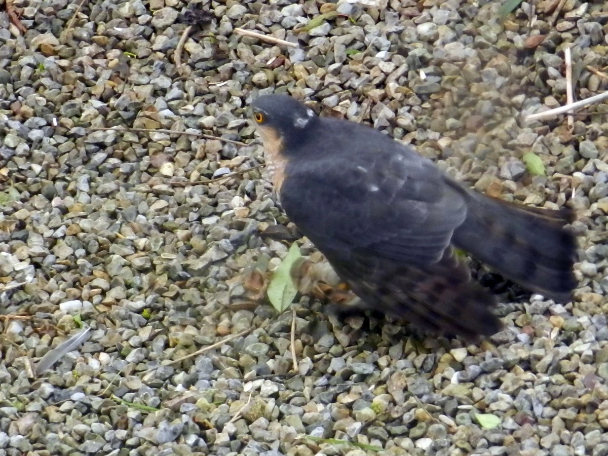 um den Sperber schon vorher zu vergraulen, war keine Zeit, ich hab ihn ja nicht gesehen und als ich ihn sah, war's ja schon zu spät.