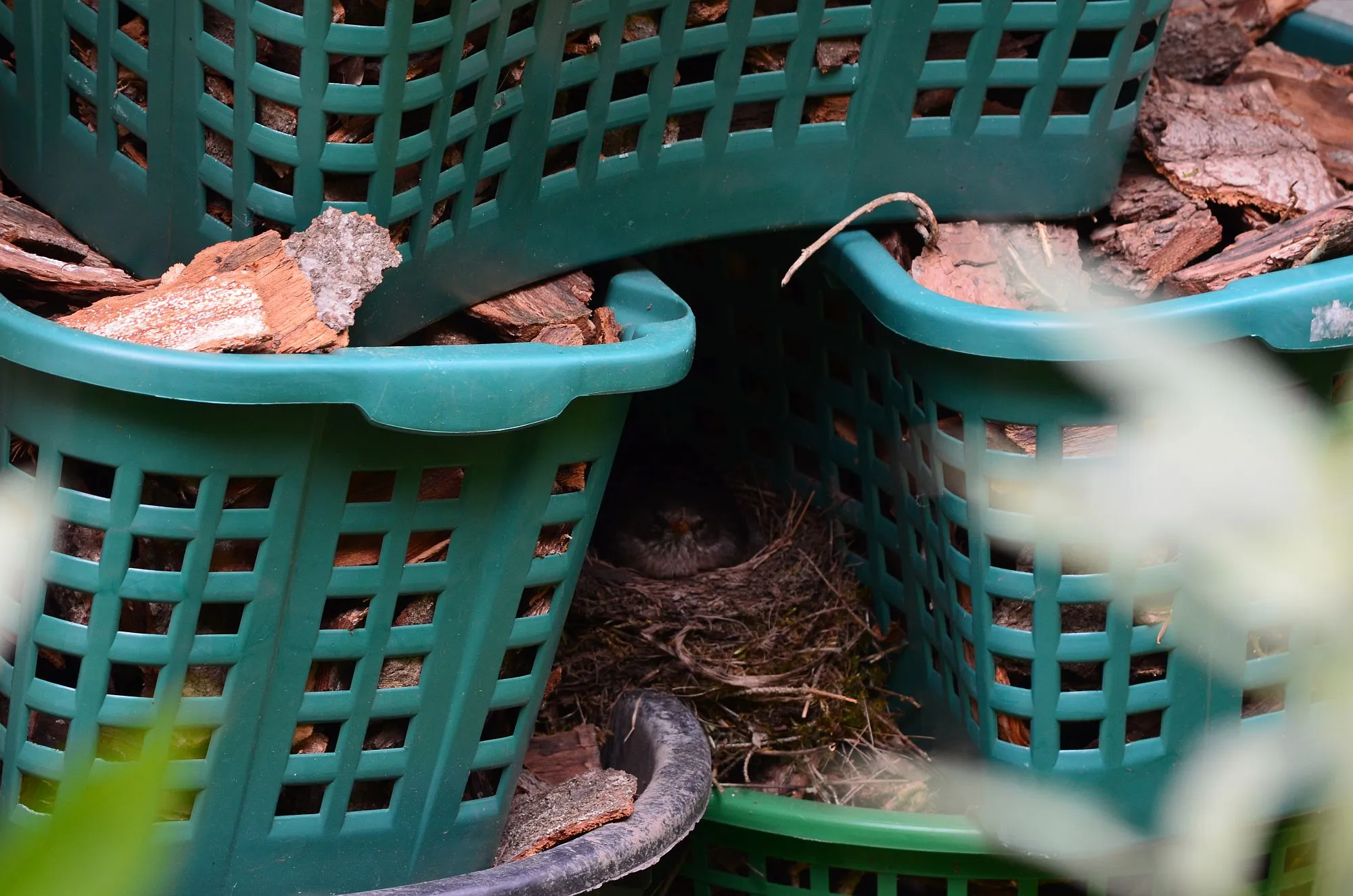 hier das geniale Nest...zwischen Rindenmulch