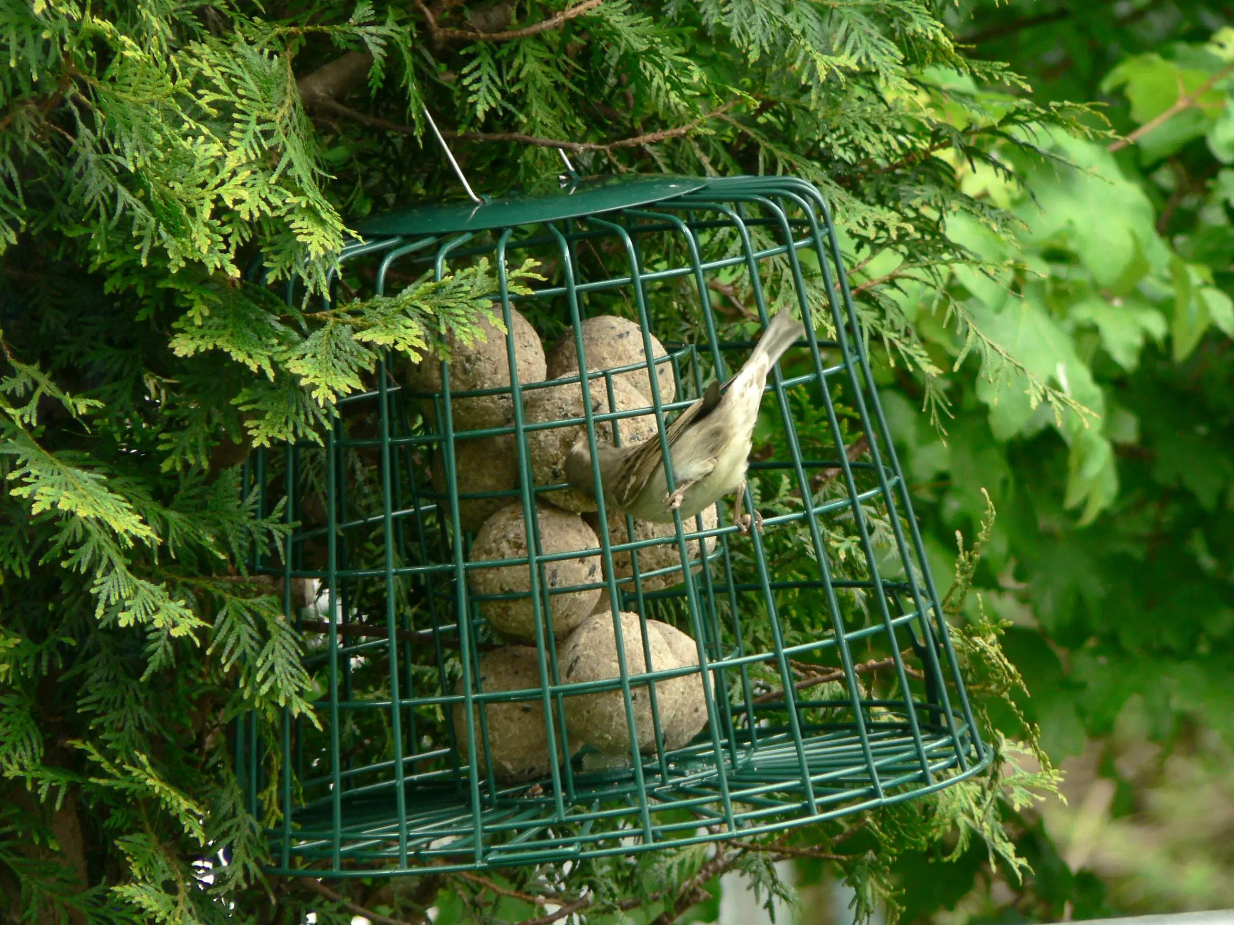 Hab jetzt so einen Schutzkäfig für die Knödel bestellt. Die Meisen und Spatzen kommen noch ran, aber die Stare nicht. Gibt auch außerhalb noch ein paar Knödel, aber keine 10 Stück am Tag, da werd ich ja arm...