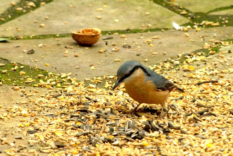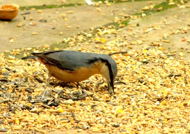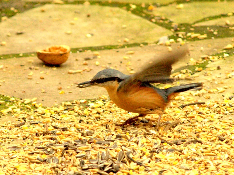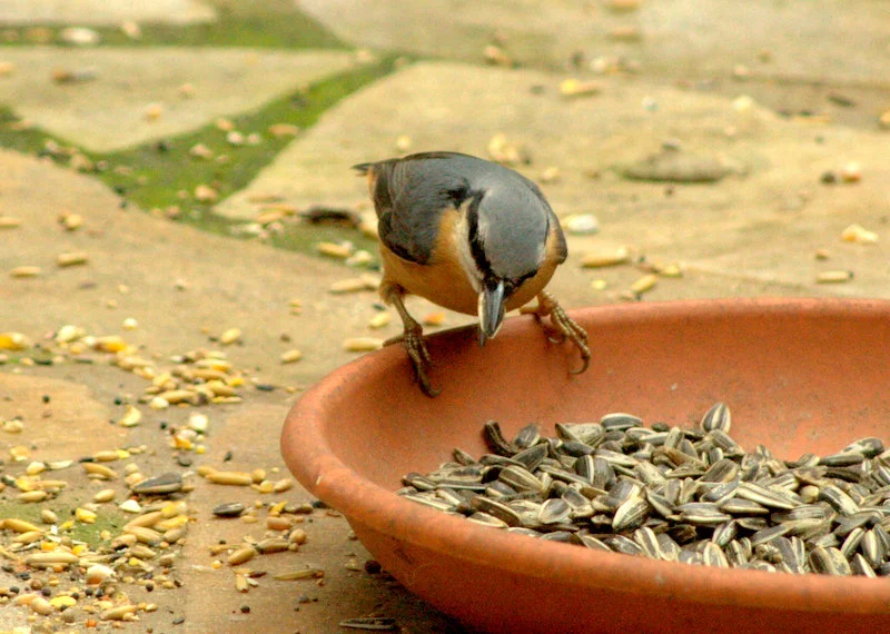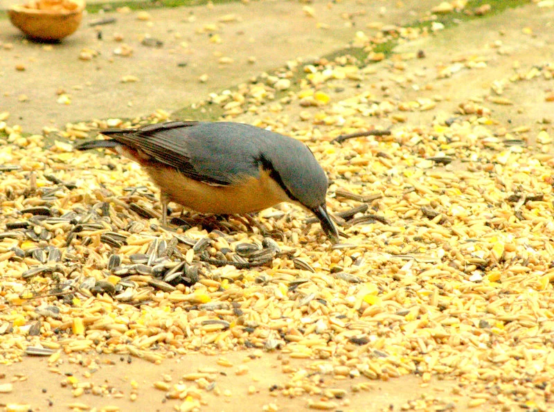 Der Kleiber holt sich nur Nüsse und Sonnenblumenkerne, aber dann immer im Schnitt 4 Stück, hab gelesen, dass sie sich einen Wintervorrat anlegen.