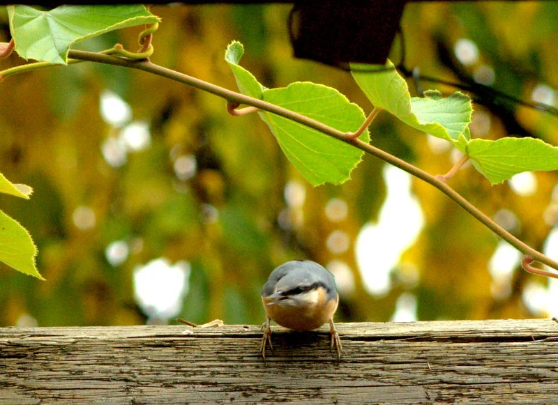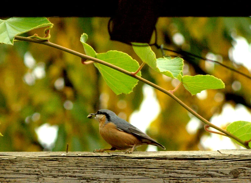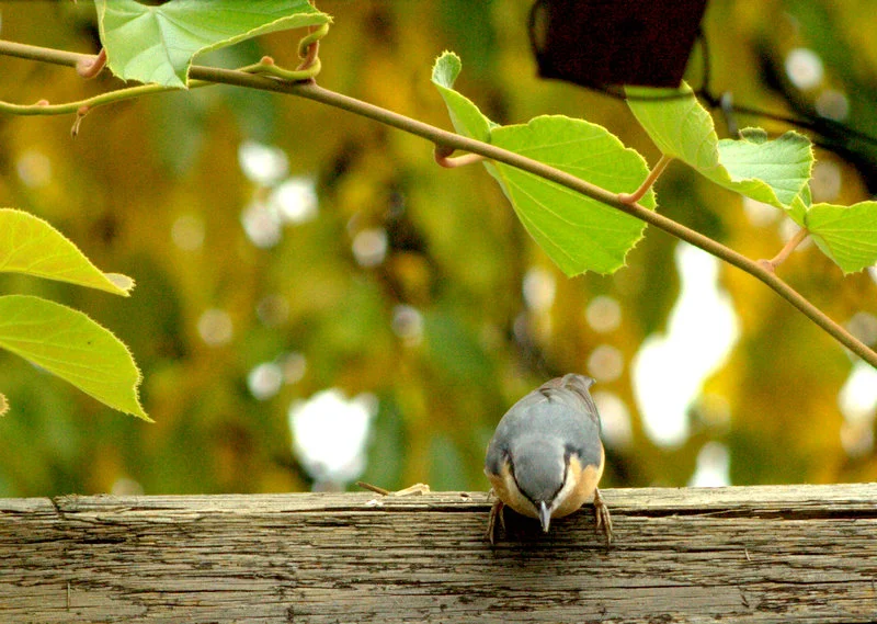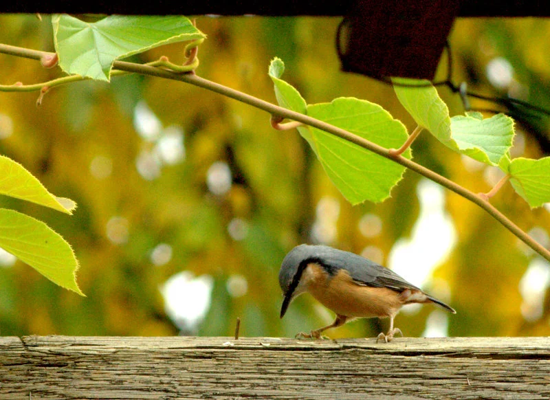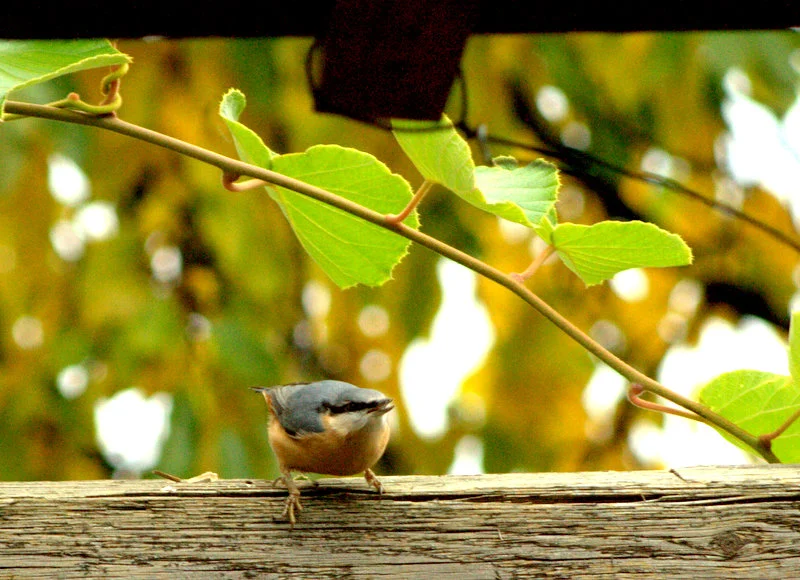 Ein Kleiber fliegt immer auf den letzten Balken von meiner Pergola, da hackt er dann rum wie ein Specht.