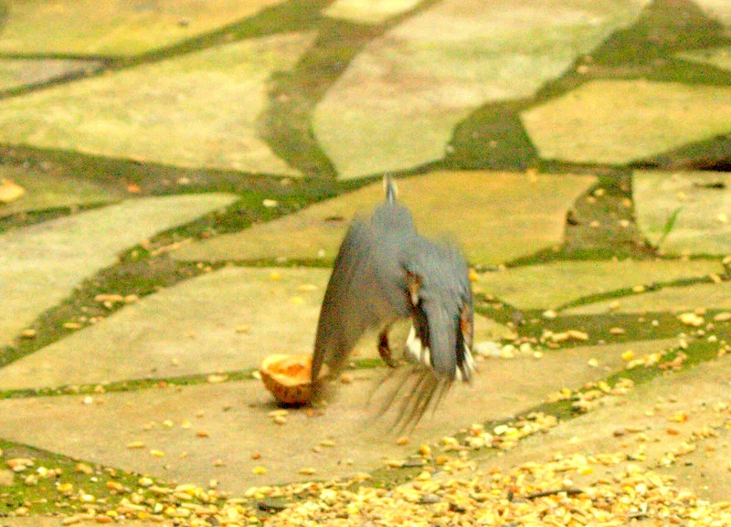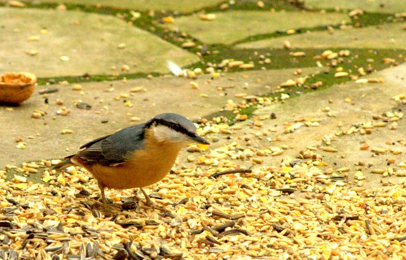 Seltsamerweise gehört auch der als absoluter Klettermeister geltende Kleiber zu den Vögeln, die lieber die Futterstelle am Boden aufsuchen.