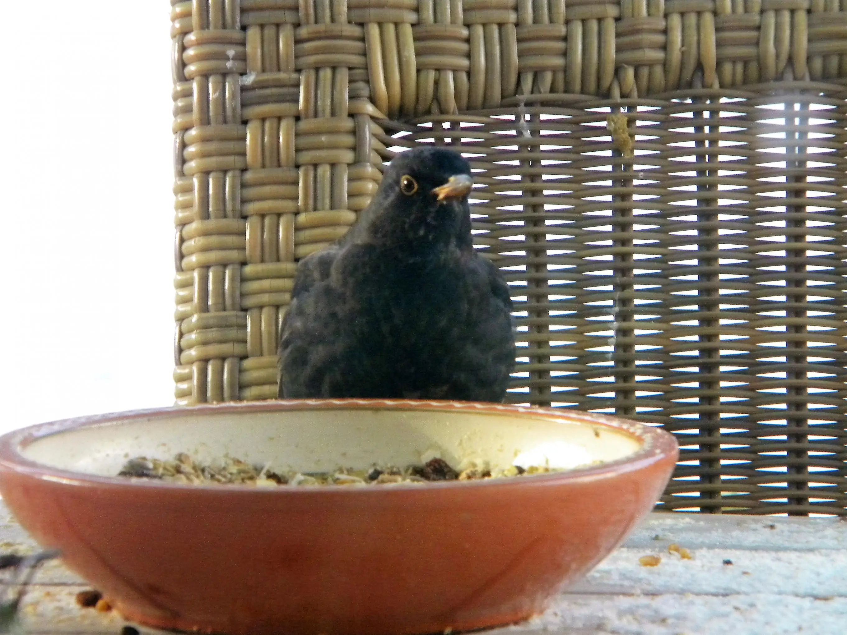 die ist gaaaaanz schön kämpferisch :d..watt hat die die anderen Amseln verjagt und reingefuddert, als ob es morgen nicht mehr aufgefüllt wird :grins: