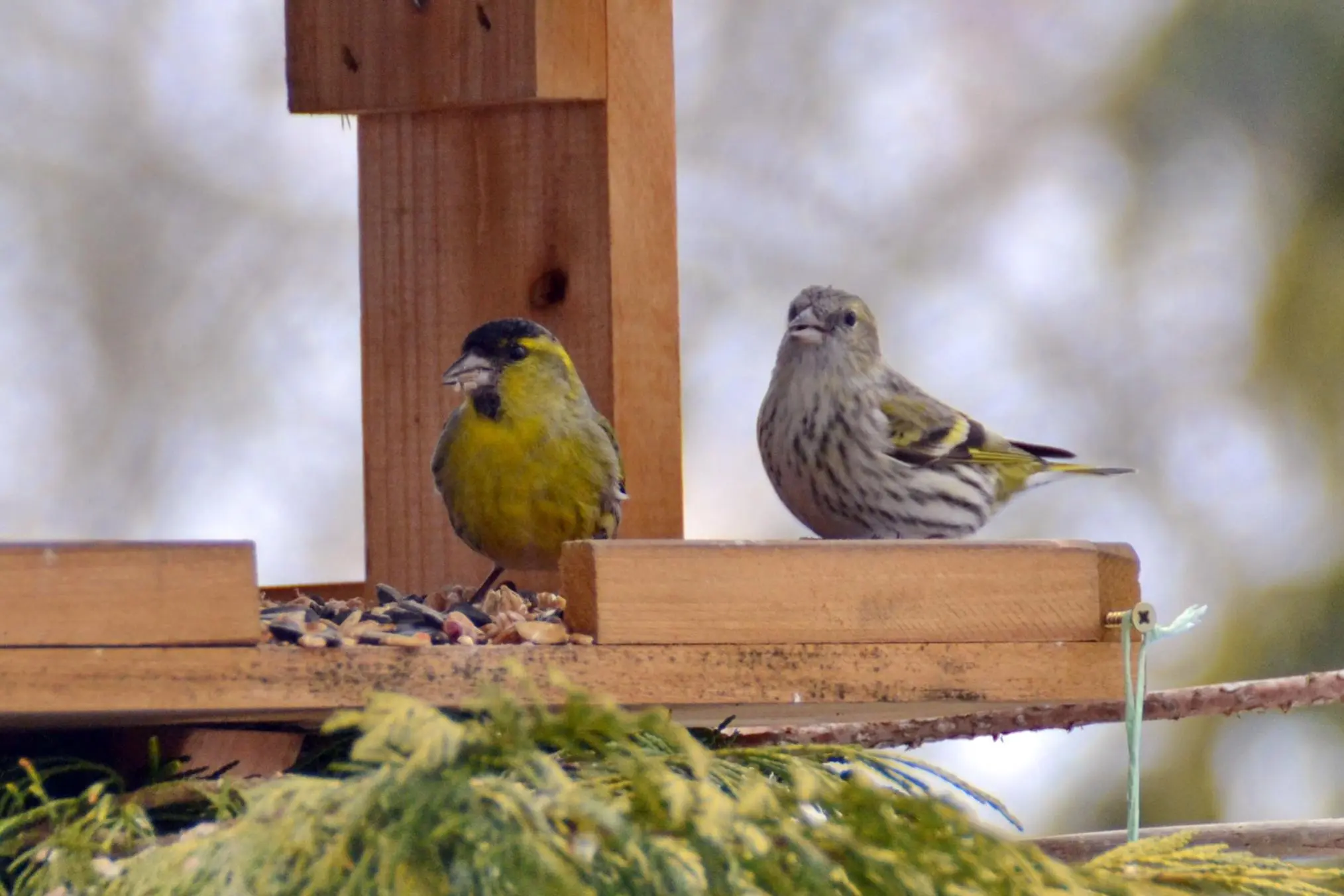 Die Erlenzeisige sind ein recht lustiges Völkchen.