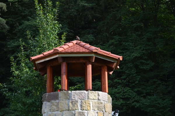 Ich kann hier regelmäßig Eichelhäher beobachten. Heute Morgen "durfte" ich dabei zuschauen, als er ein blutiges Mahl zu sich nahm, eine richtige kleine Blutpfütze von ca. 5 cm Durchmesser war auf dem oberen Riegel der Pegola. Nur wie immer in solchen Momenten, der Fotoapparat war nicht griffbereit.