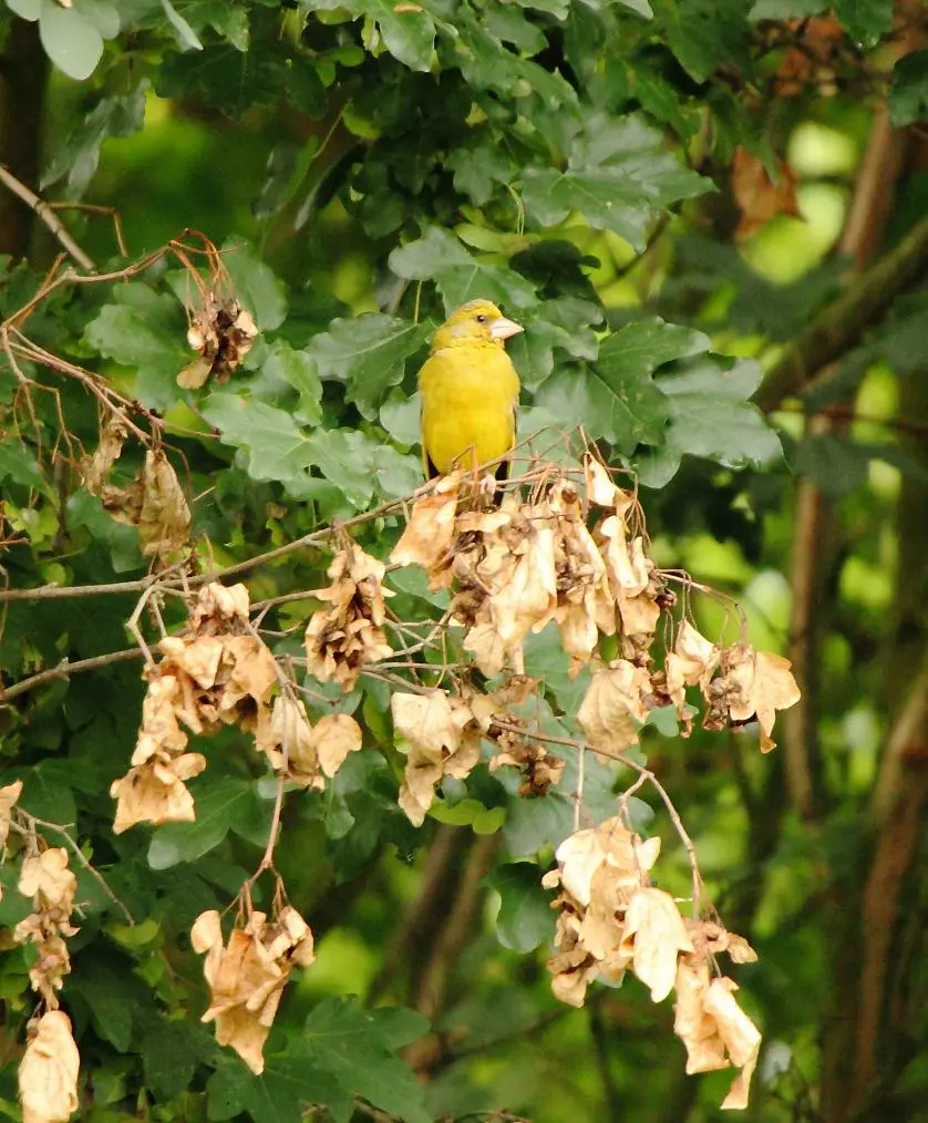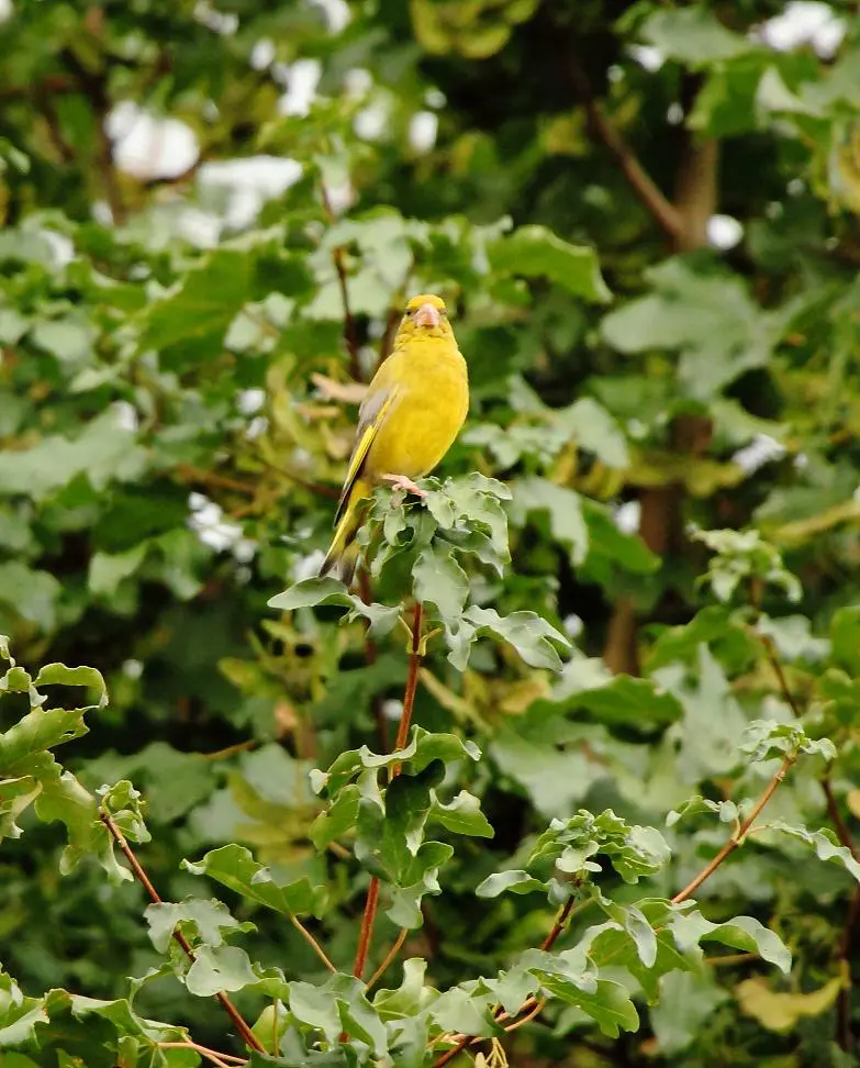 Auch Grünfinken (ist das einer? ) besuchen gern den kleinen Teich.