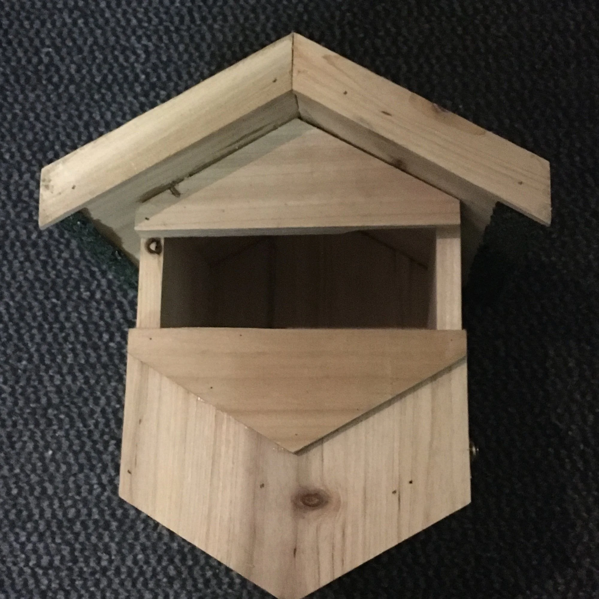 Nistkasten_Höhlenbrüter_03.jpg Die hochklappbare Seitenwand ist nach 2-maligem Öffnen ganz ausgebrochen. Das Holz war im Regen aufgequollen und dauerhaft verzogen, sodass die Tür festklemmte und aus der Führung brach. Wahrscheinlich schon bei der Herstellung angebrochen gewesen – Bei den geringen Materialstärken und schlechten Verarbeitung kein Wunder.