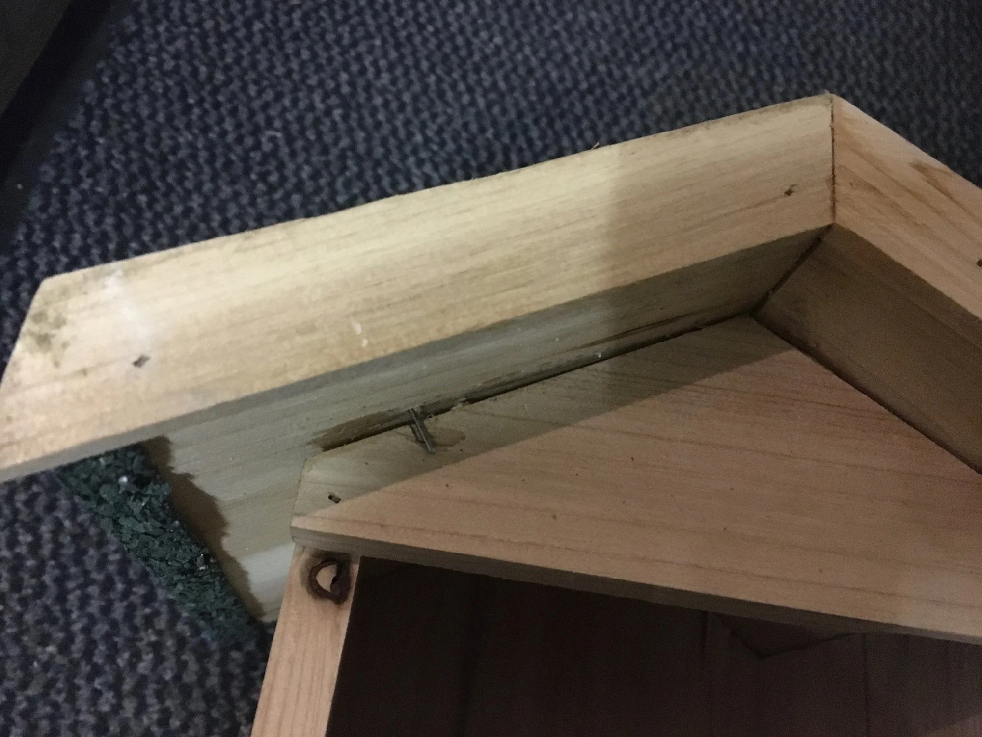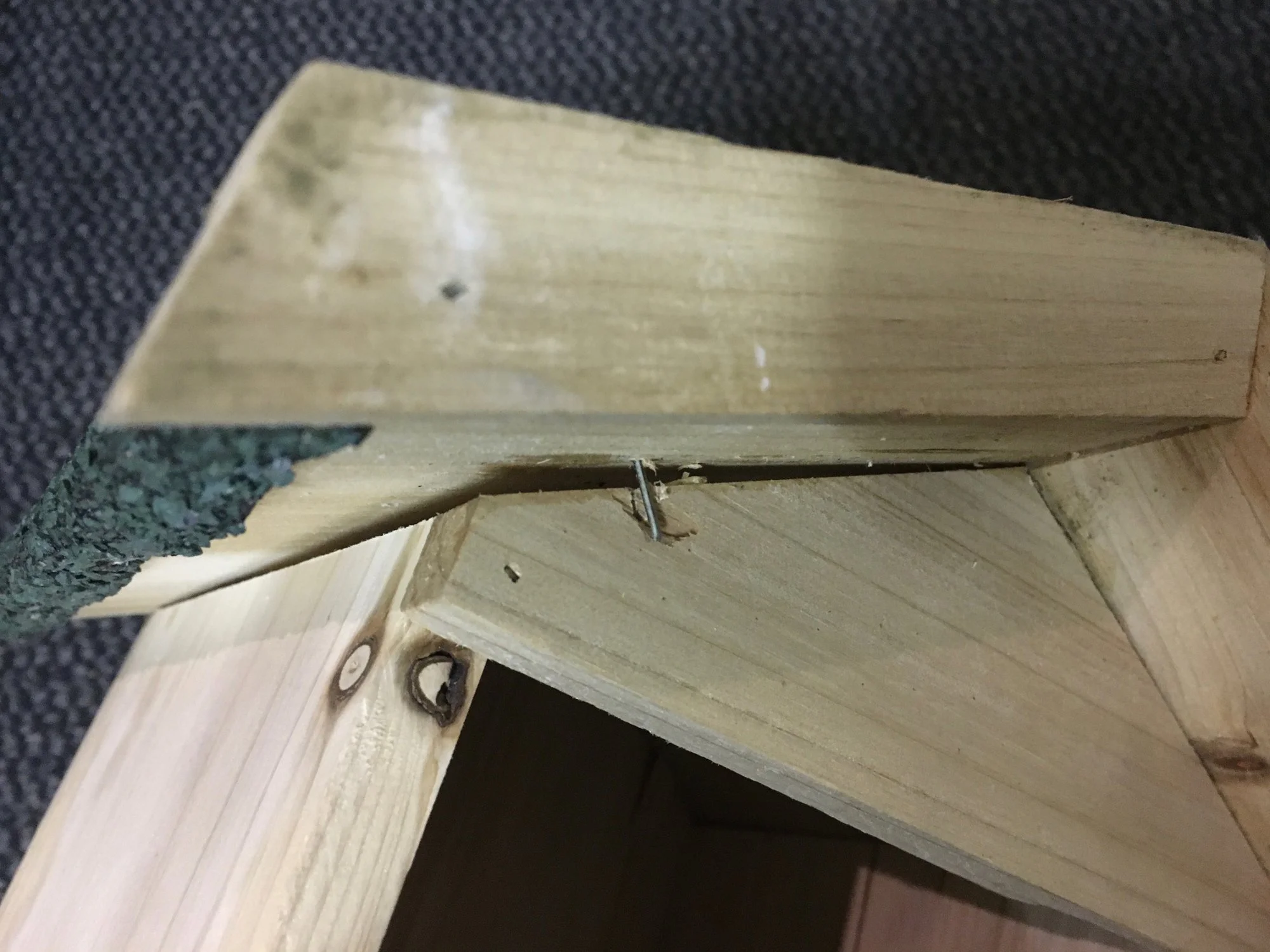 Nistkasten_Höhlenbrüter_04.jpg Nistkasten_Höhlenbrüter_05.jpg Eingeschossene Klammern sind nicht zu nah am Rand angebracht, haben das Holz abgespalten und halten nicht mehr – rechts oben und