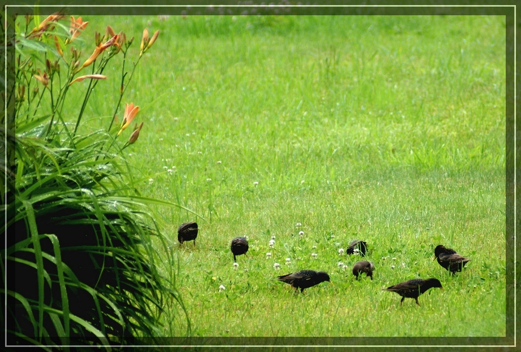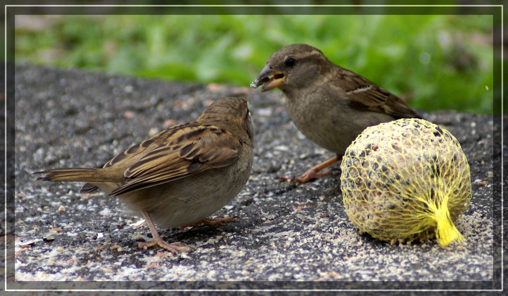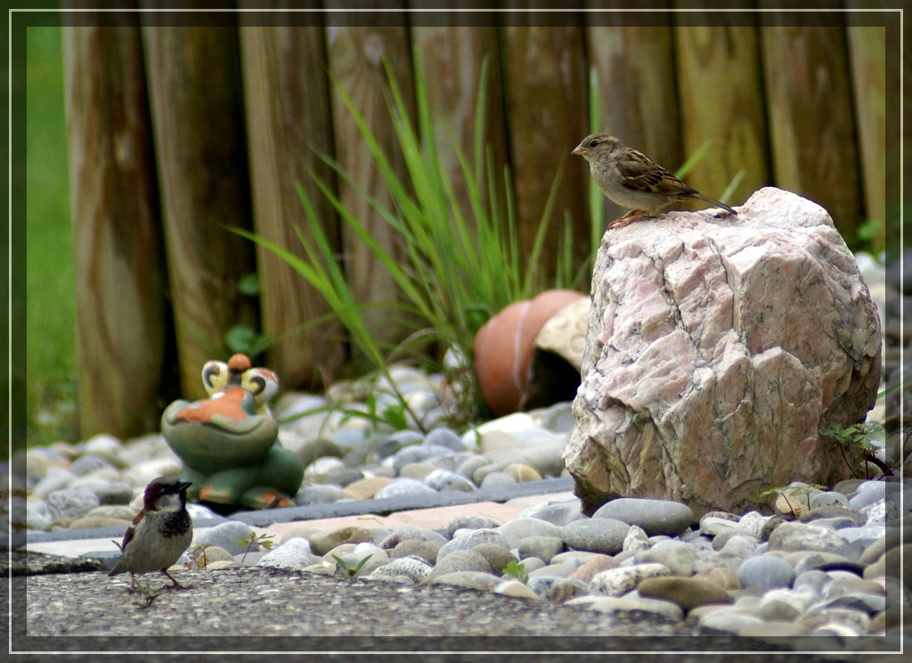 Die Butzies haben sich vor dem Regen gerettet. Insgesamt habe ich 4 Stück gezählt! Liegt wahrscheinlich auch daran, daß ich neue Knödel geholt habe.