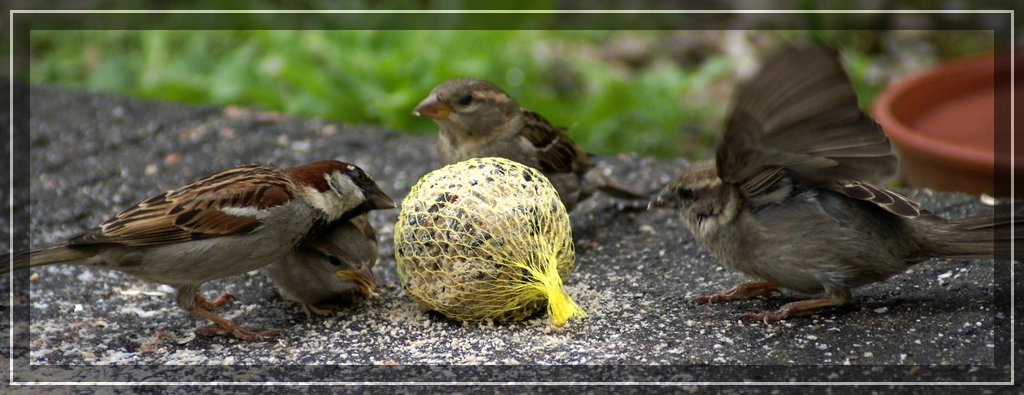 Gestern im Garten entdeckt, die Feldsperlingsfamilie