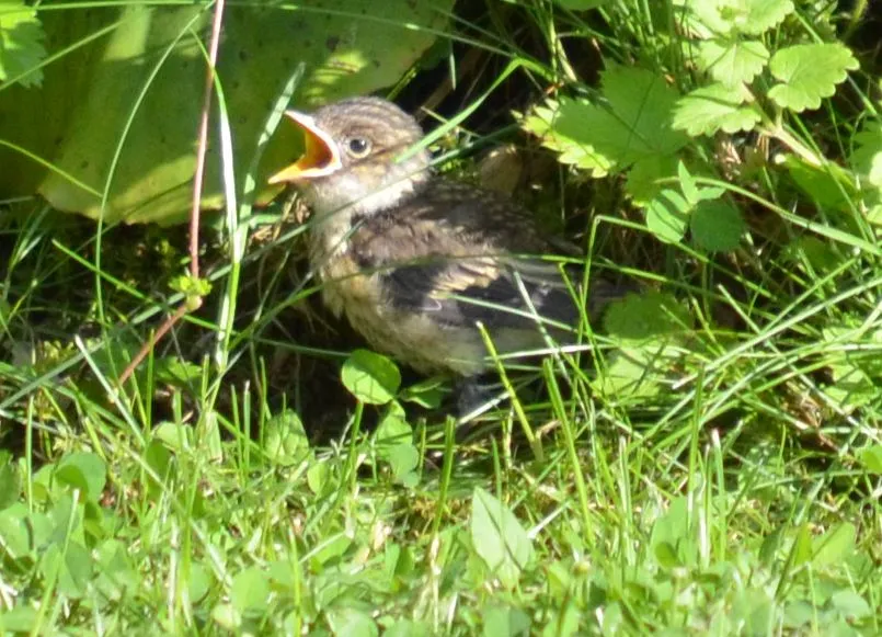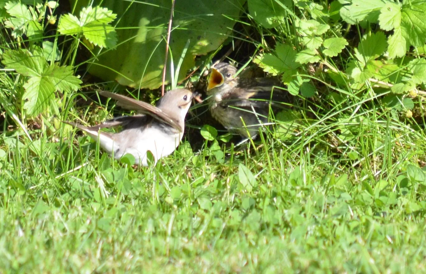 Man staunt - die jungen Fliegenschnäpper werden sogar am Boden gefüttert.
