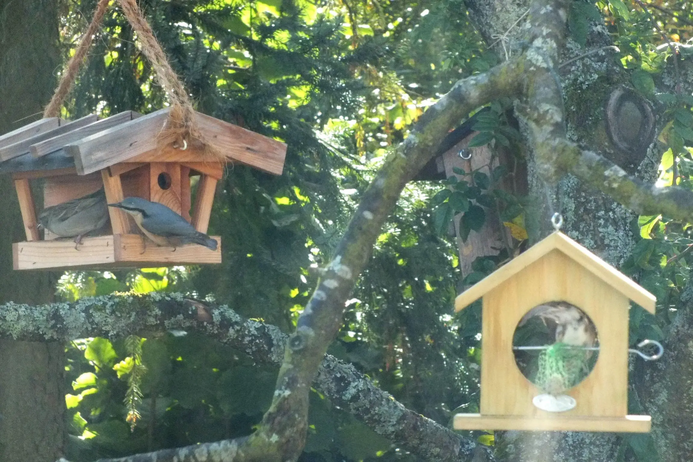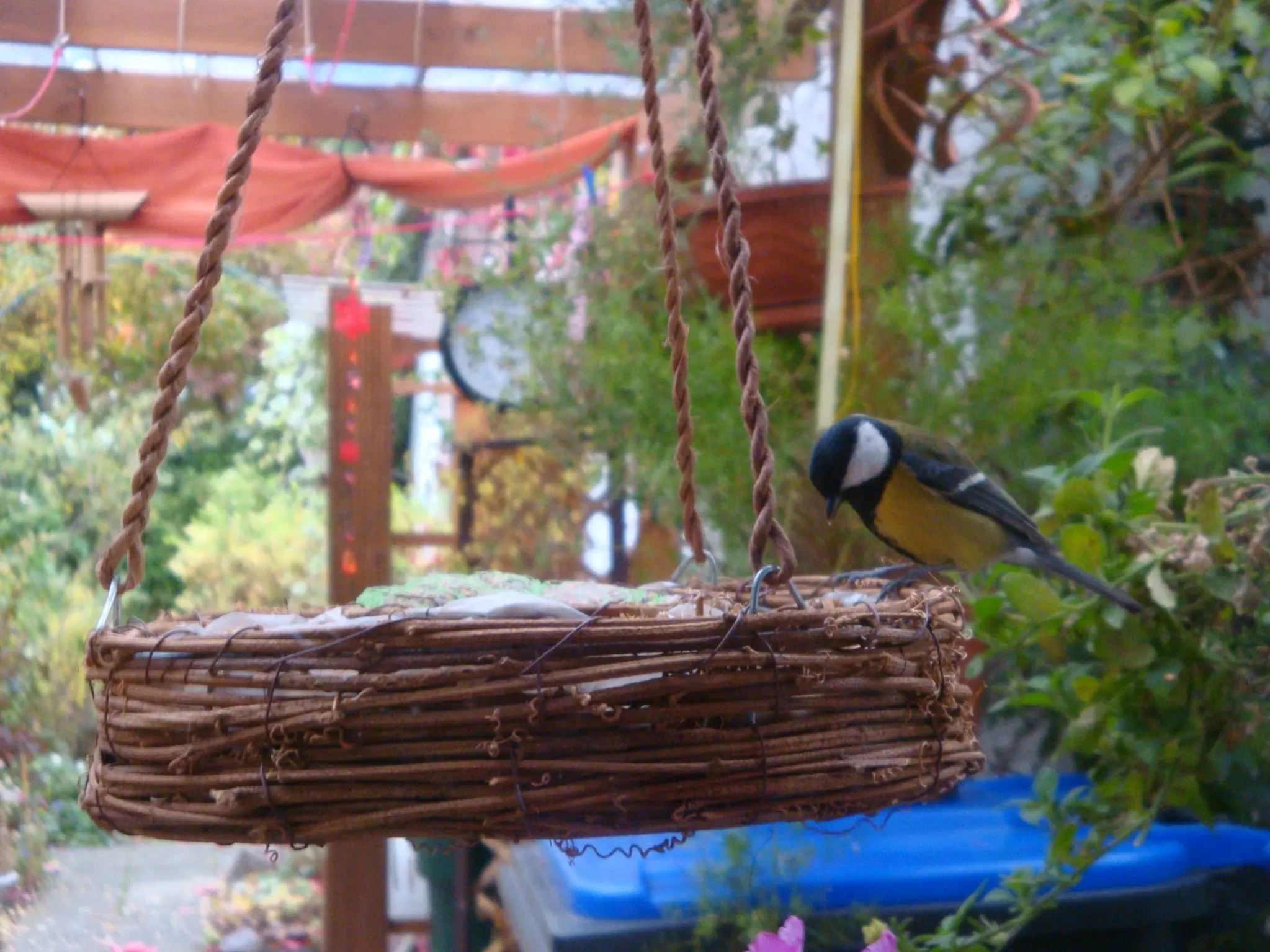 Guiseppe, das Rotkehlchen ist ein Bodenfresser. Mein Anton beschwert sich jeden Morgen recht laustark, weil ich Knödel, Nüsse und eine Schale Sonnenblumenkerne "höher" gestellt habe. Die Sonnenblumenkerne habe ich auf einen umgestülpten Blumenkübel gestellt. Die Elster spazierte mehrfach um den Kübel, kam aber nicht an das Futter. Bisher sind nur Kohlmeisen aktiv, aber das wird sich bald ändern.