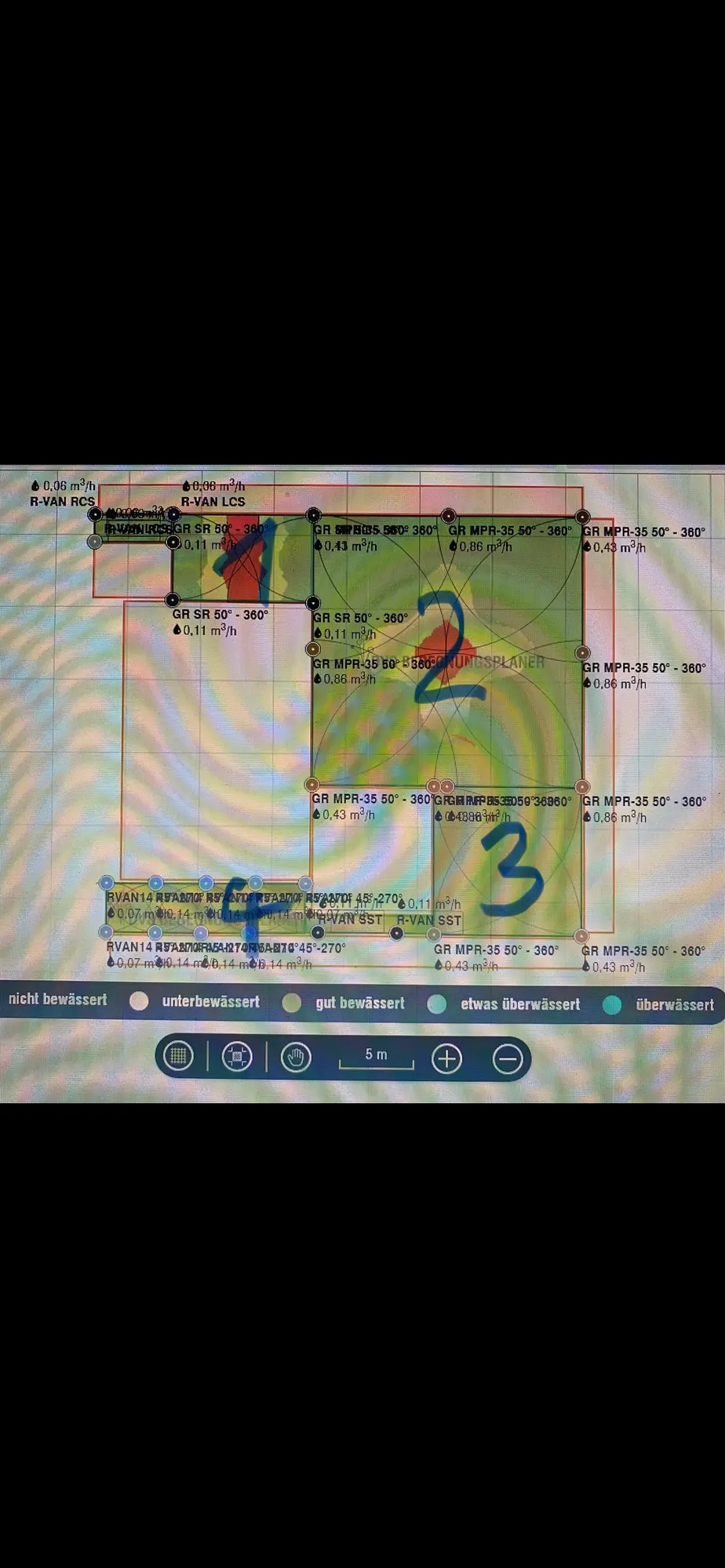 Aufgrund der verschiedenen Winkel muss da auch ein weiterer Regner hin.