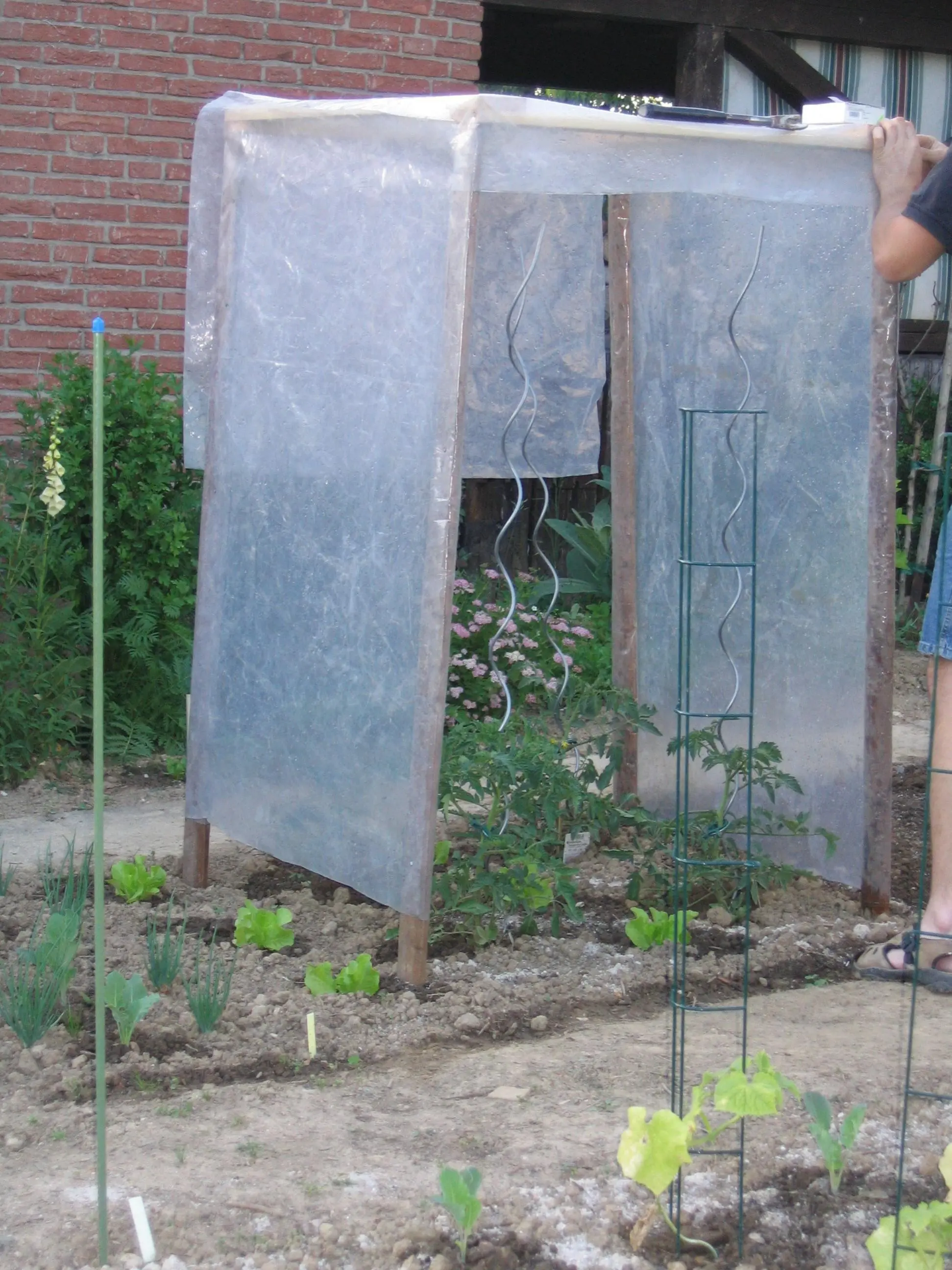 nee, das ist doch das Tomatenhäusschen... da wird mein Schosch aber ganz traurig sein, wo er doch extra zur späten Abendstunde aufgrund von angekündigtem Regen schnell einen Tomatenschutz gebaut hat...