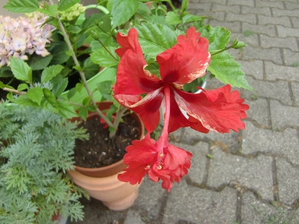 Mein Hibiskus "El Capitolio" ist jetzt gnädigst zur Puschelbildung übergegangen: