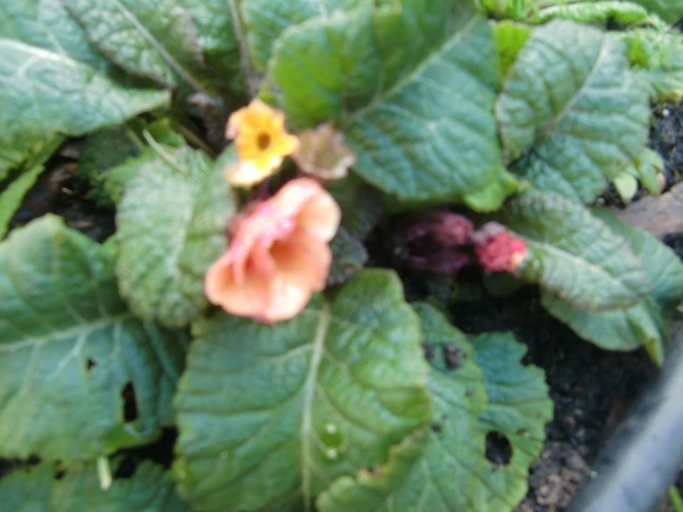 draussen, immer noch die Rosen, Primelchen u. Ringelblumen, irre.