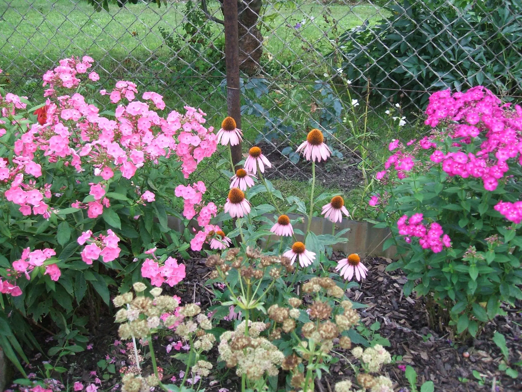 die roten und weißen sind echinaceas und werden auch unterschiedlich hoch je nach sorte.ich habe welche zwischen 40 cm und 1,20 m.