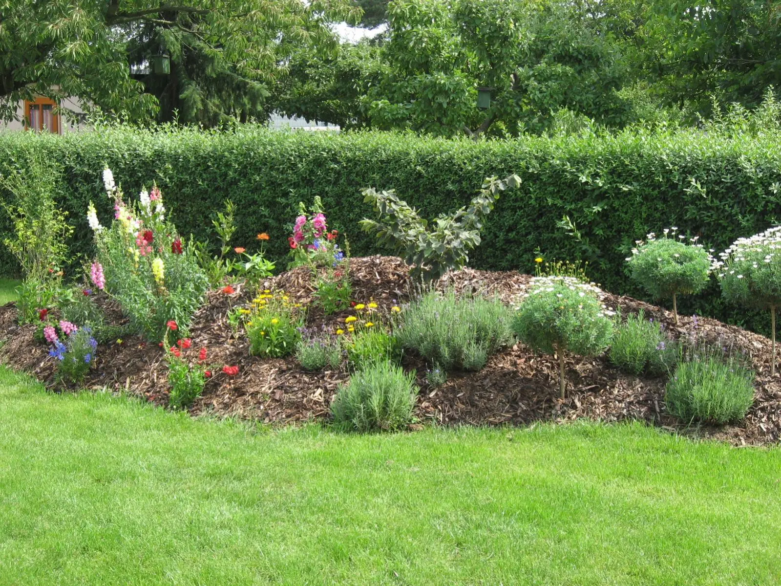 Frauchens "Kasper-Ecke", bunte Blumen querbett. Da kommt mit der Zeit sicherlich noch einiges hin