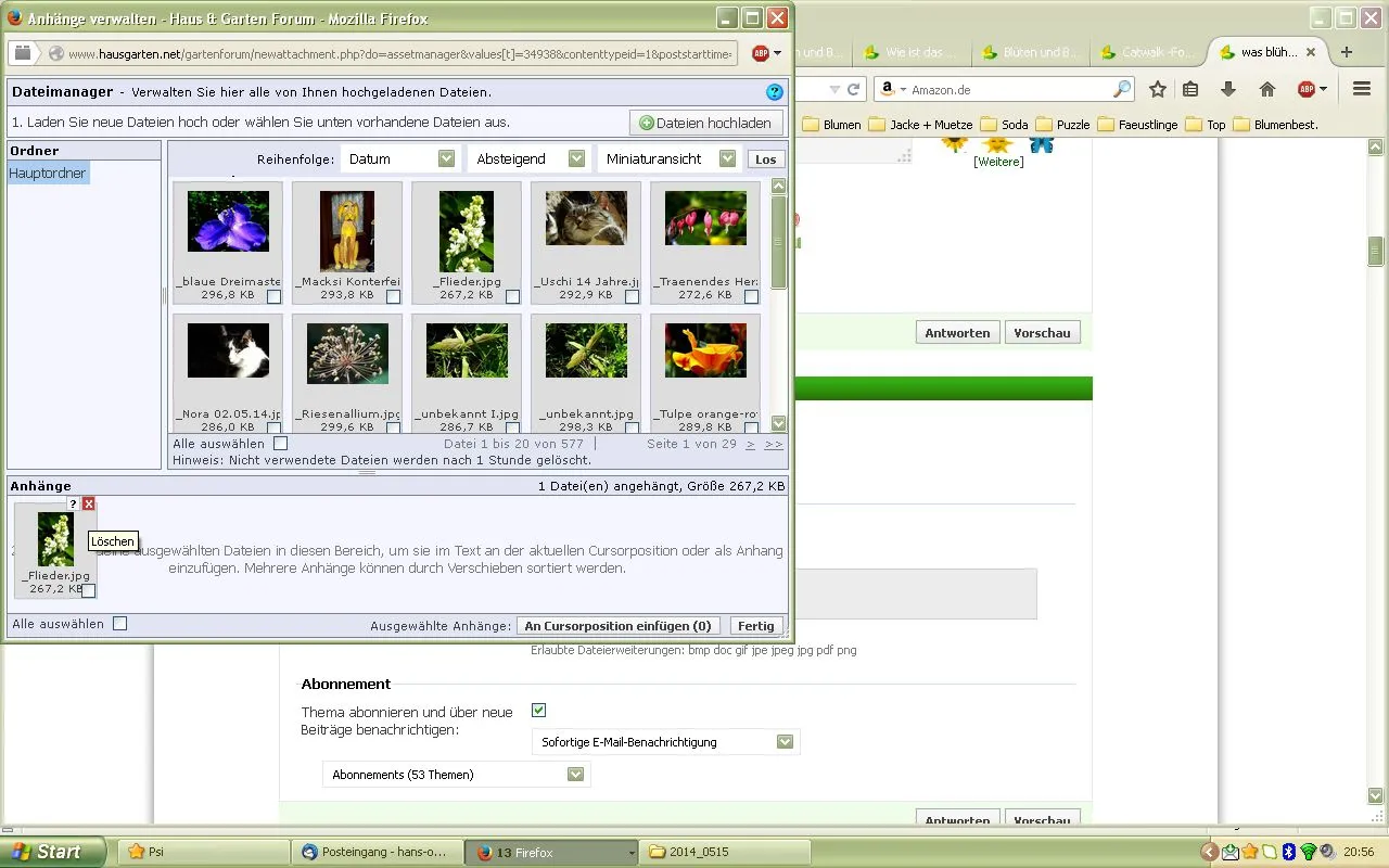 Du gehst auf Bearbeiten Deines Post's, dann Anhaenge verwalten, da siehst Du Deine Bilder nochmal.