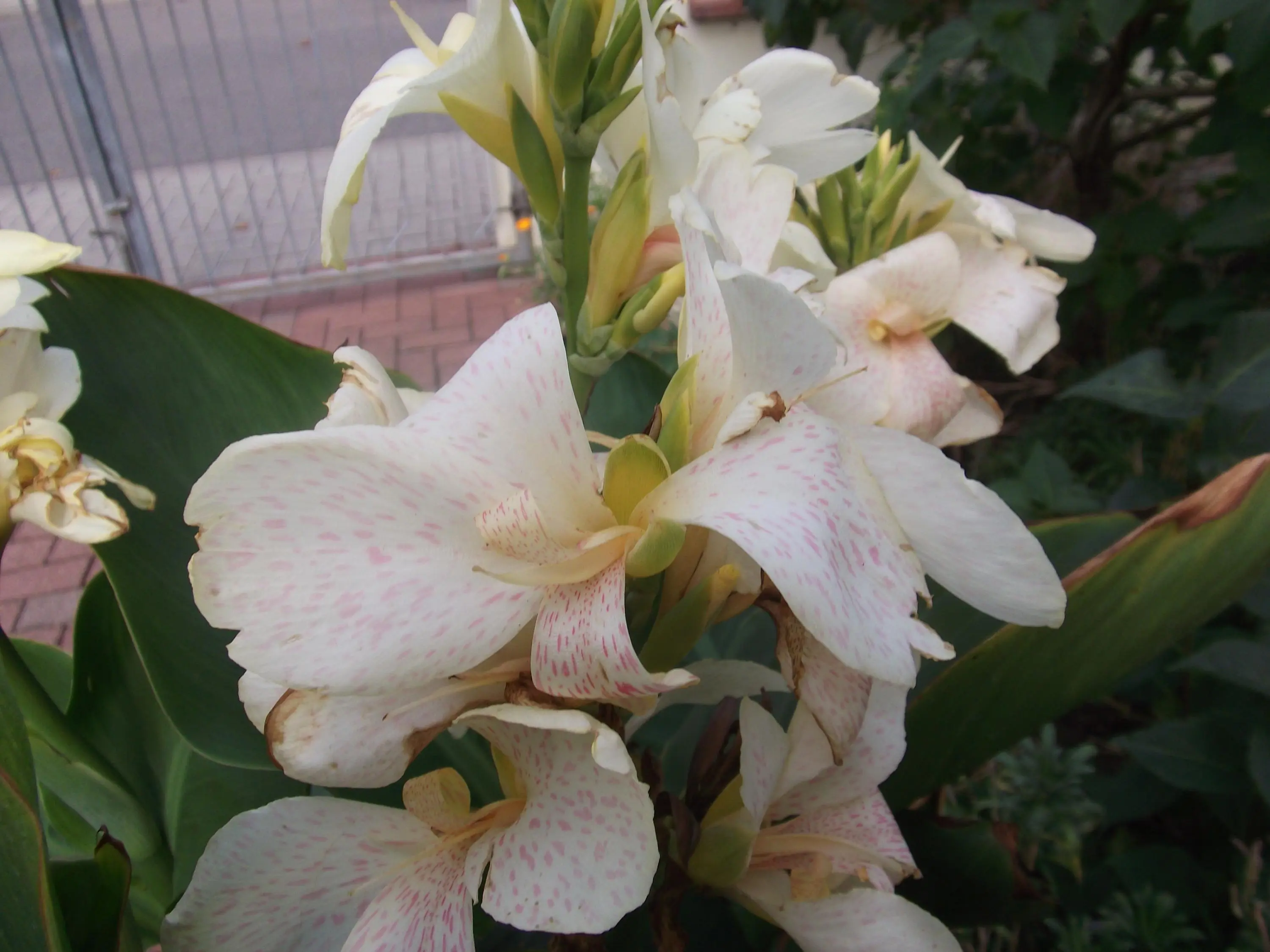 • Immer noch Rosen, Dahlie Night Butterfly, Rizinus, div. Canna Ind., Knobi-Kraut rosa u. die Dipladenia 2-farbig (unbebildert).